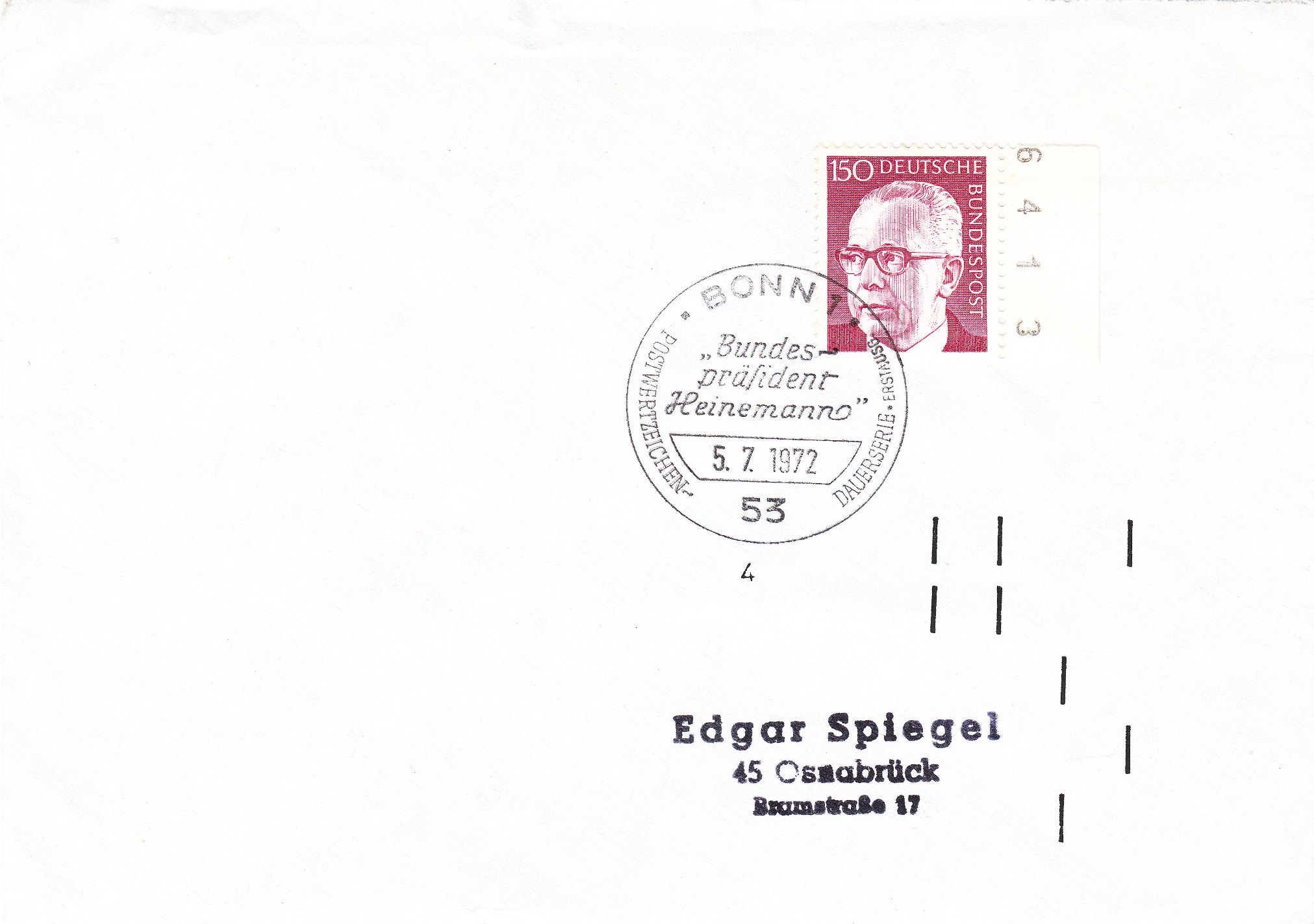 FDC des 150 Pfennig Wertes der Dauerserie Heinemann, adressiert nach Osnabrück: