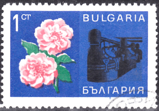 In Bulgarien ist diese Marke (MiNr 1725) in einer Serie "Wirtschaftliche Erfolge" erschienen. Sie zeigt Rosenblüten und eine Rosenölgewinnungsanlage.