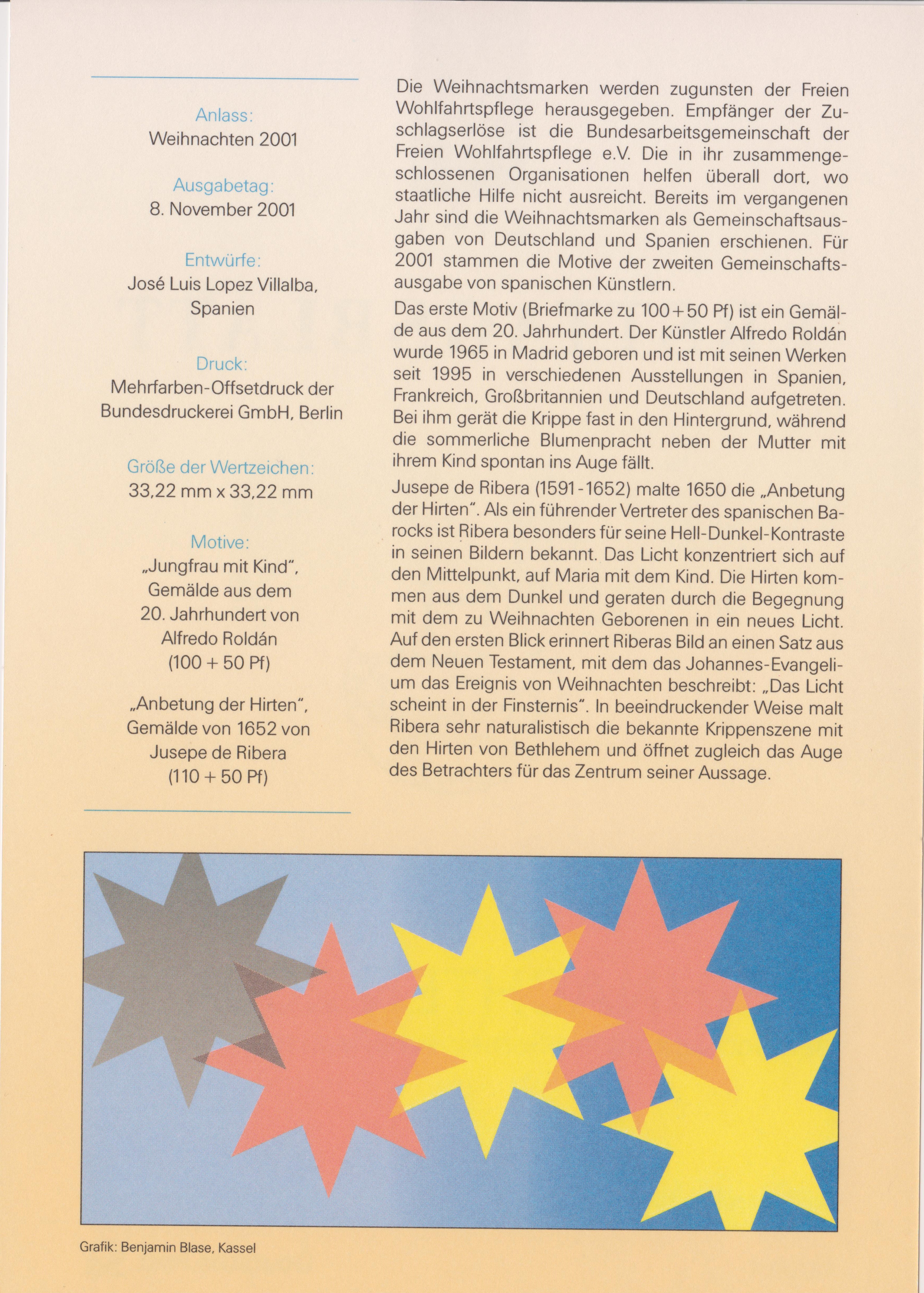 Farbige Ministerkarte des Finanzministers mit zwei Weihnachtsmarken 2021 (MiNr 3636) mit der Abbildung "Verkündigungsengel mit Lilie, im Hintergrund zwei Puttenköpfchen in den Wolken" nach einem Ölgemälde von Johann Michael Hertz (1725–1790, deutscher Maler) und den beiden Ersttagsonderstempel Bonn und Berlin.