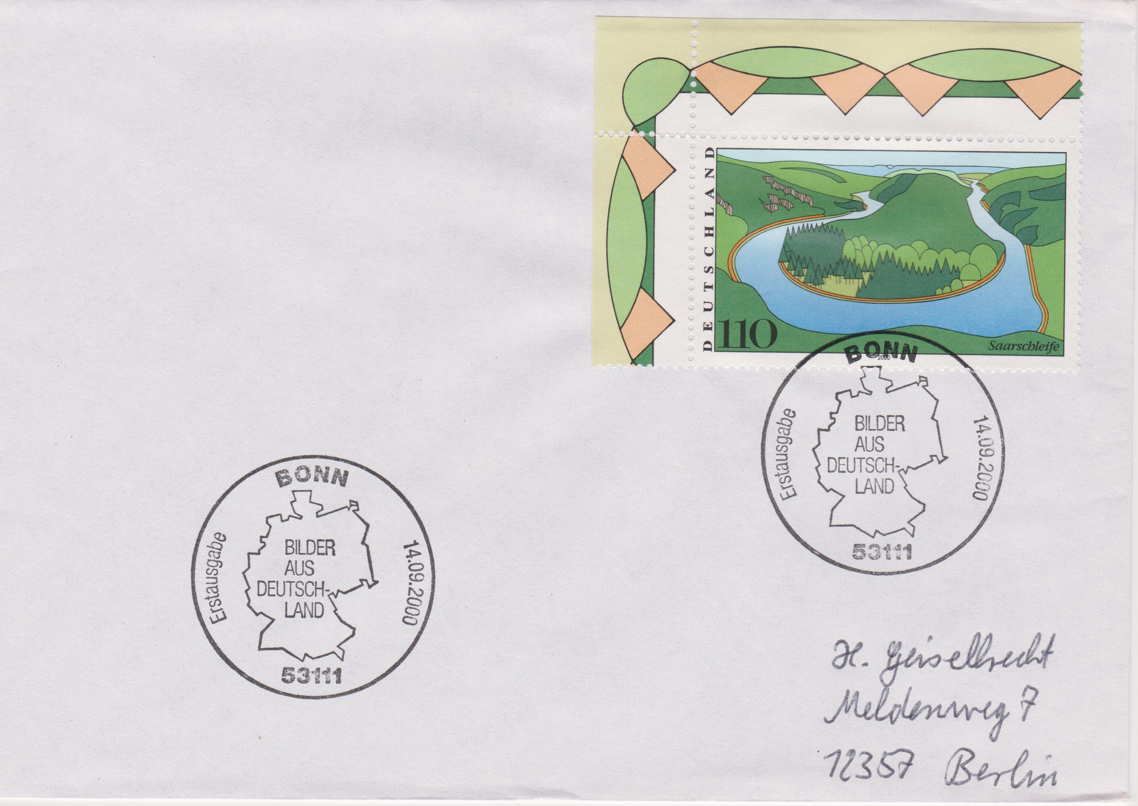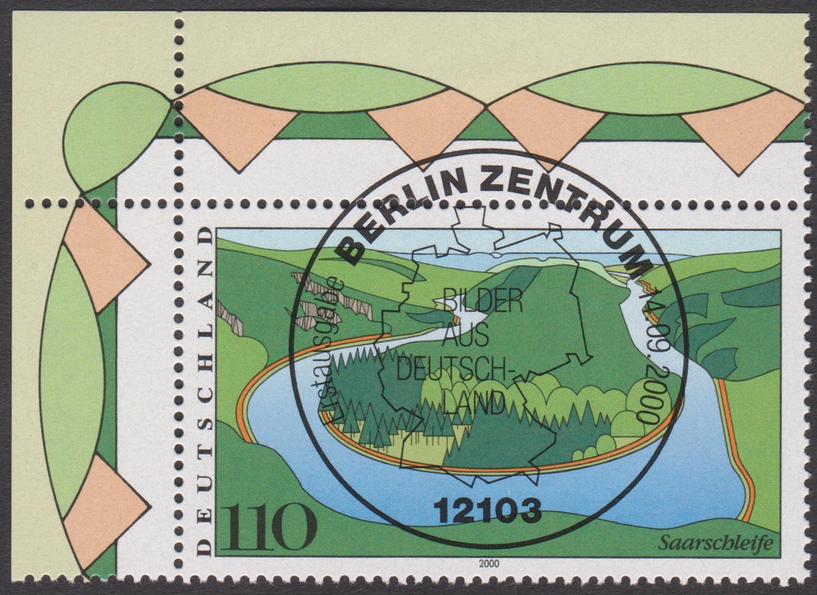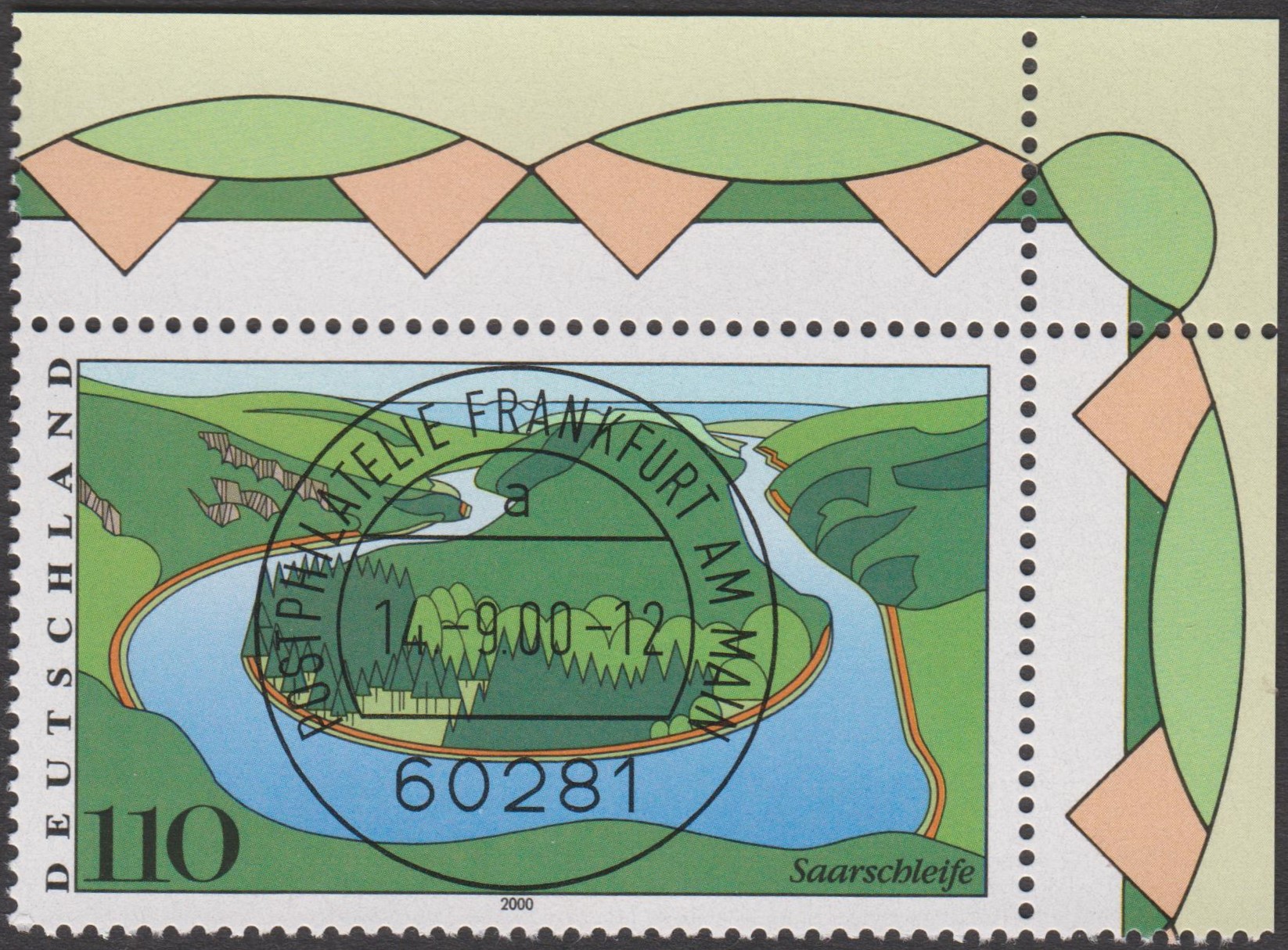 Bund MiNr. 2133 zeigt einen Blick auf die Saarschleife bei Mettlach, hier auf ETB 36/2000: