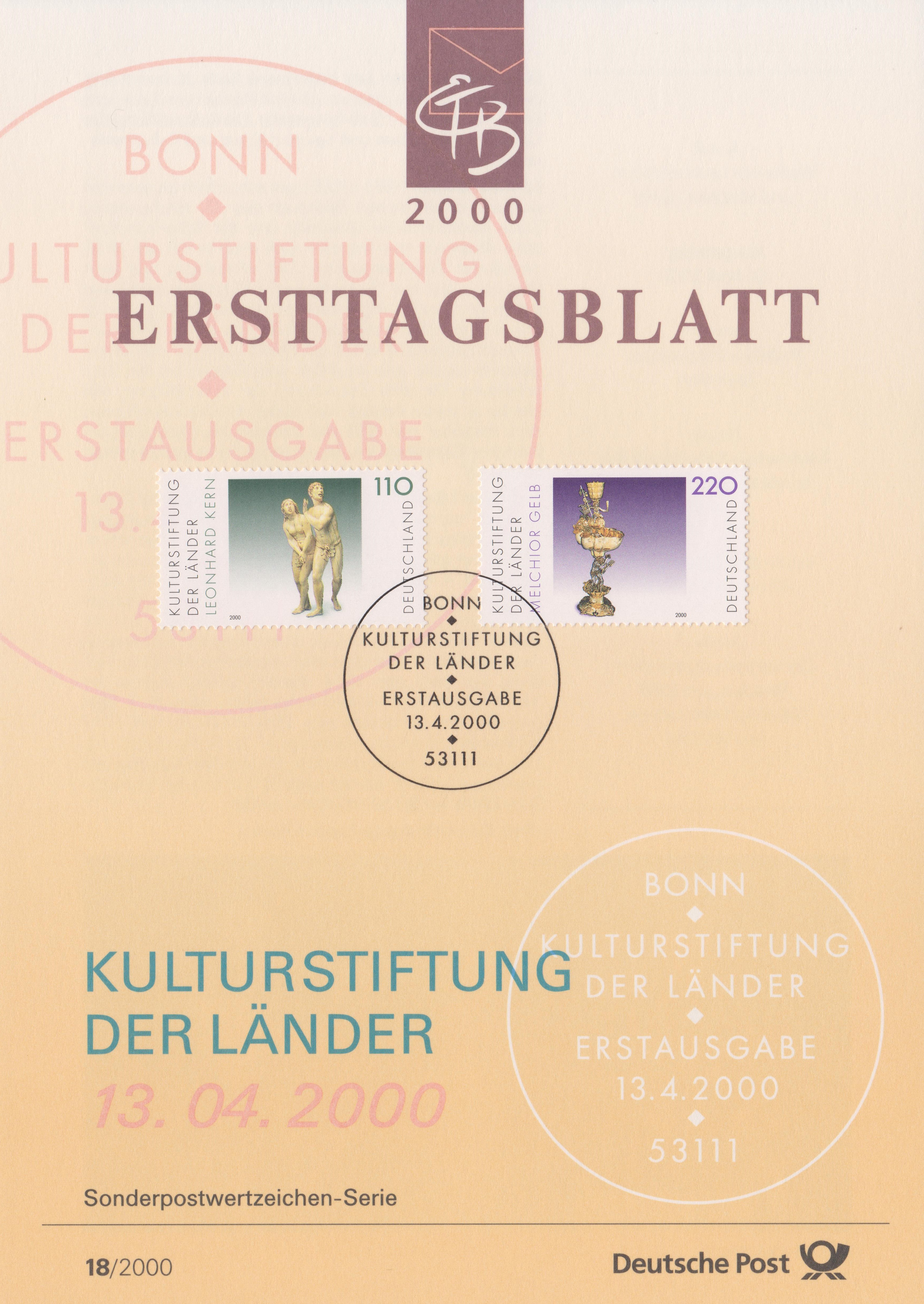 Bund MiNr. 2107 zeigt die Elfenbeinskulptur "Die Vertreibung aus dem Paradies", hier auf ETB 18/2000: