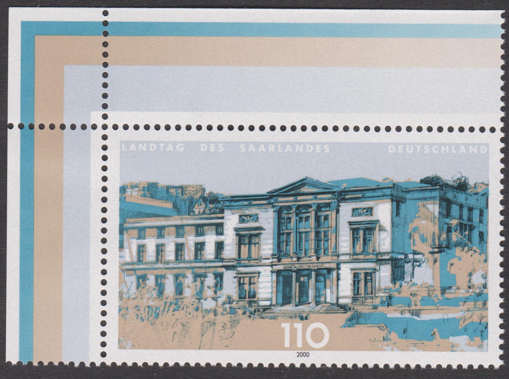 Bund MiNr. 2153, LANDTAG DES SAARLANDES, linke obere sowie rechte untere Ecke des Zehnerbogens postfrisch: