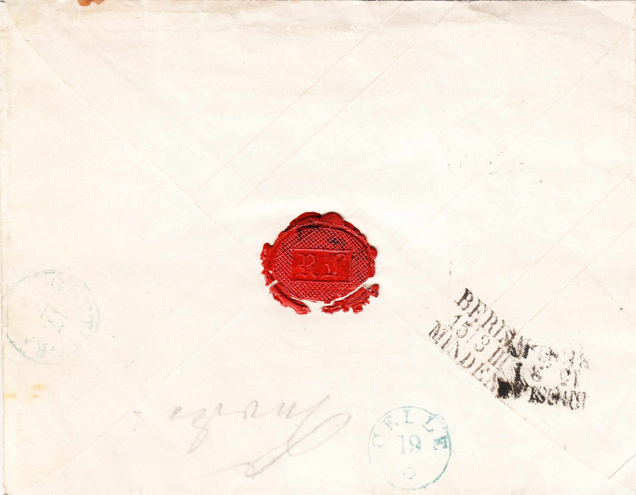 Demnach lief der Beleg zunächst am 15.03. auf der Strecke "BRESLAU - BERLIN" und dann, ebenfalls am 15.03. auf der Strecke "BERLIN - MINDEN", um schließlich am 19.03. in "CELLE" anzukommen.