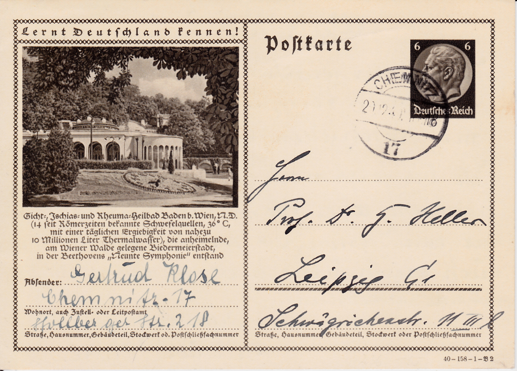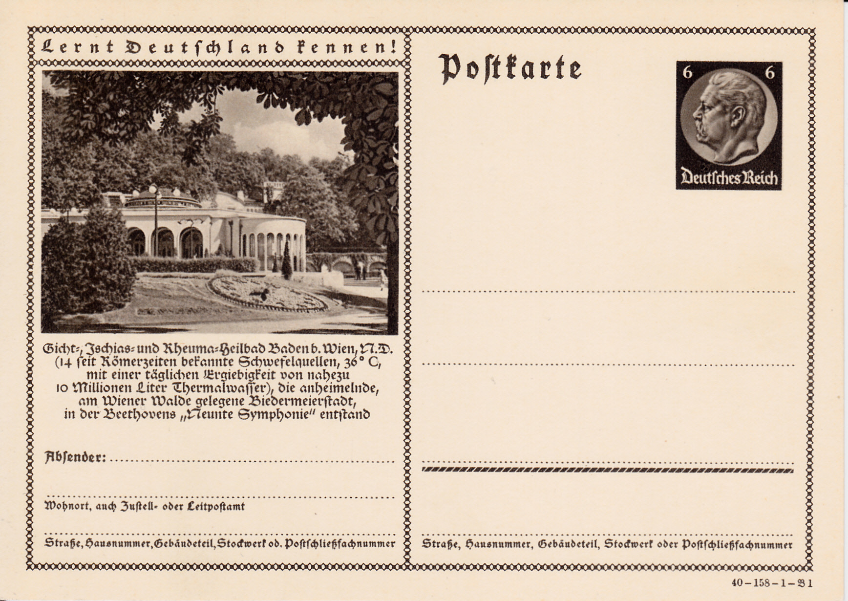 Gemäß dem Text auf dieser Bildpostkarte 1970 (MiNr P 236, Serie 158 Bild 1) ist in Baden bei Wien Beethovens "Neunte Symphonie" entstanden.