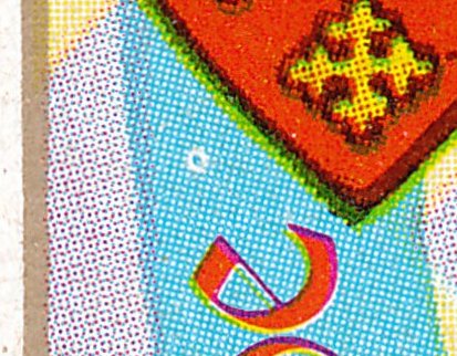 Die Briefmarke zeigt im linken Banner eine Putzenauflage, hervorgerufen durch einen Fremdkörper, der auf der Druckplatte eine Luftblase erzeugt hat, die dann geplatzt ist, wobei diese Putzenauflage entstand: