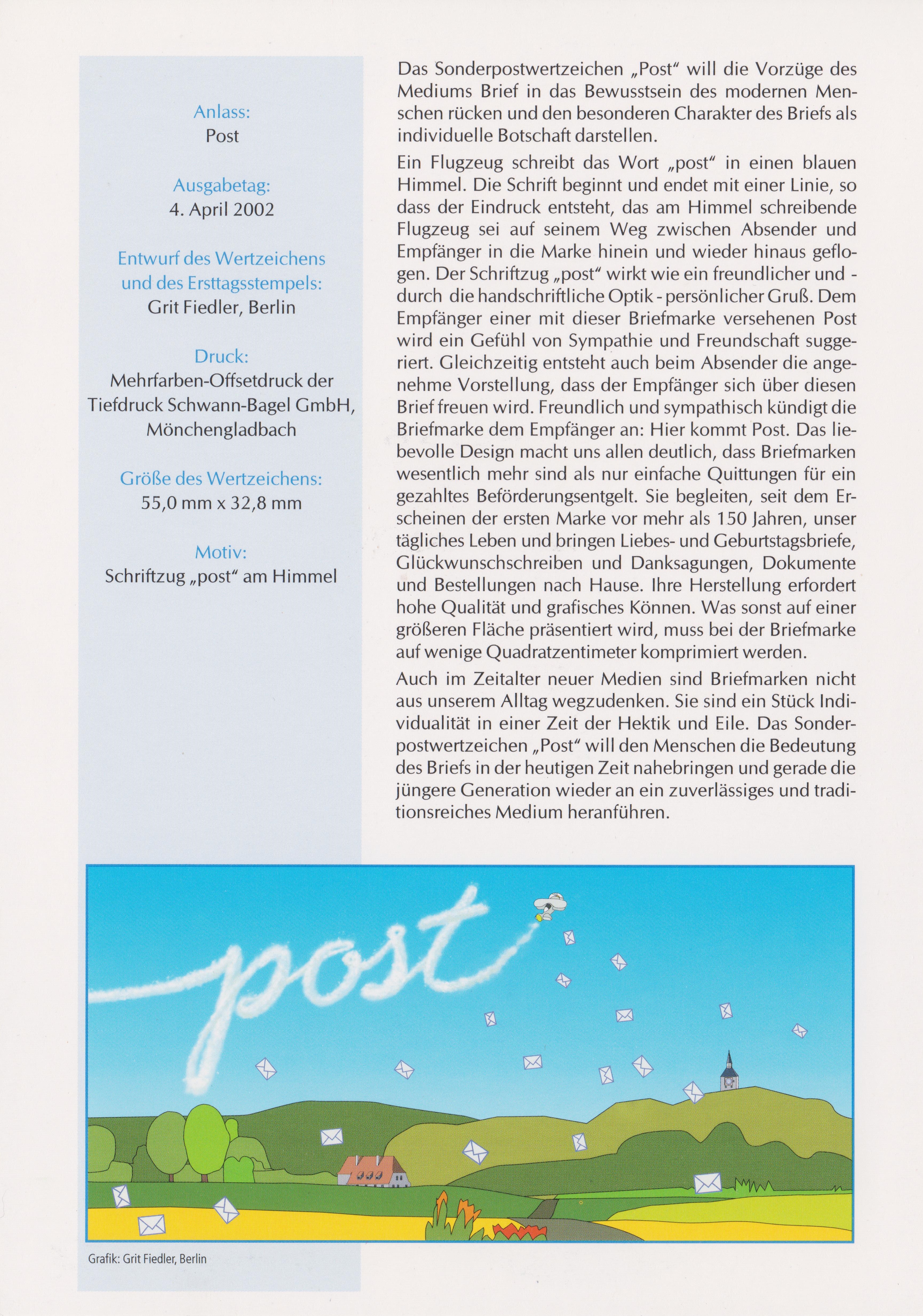 Dieses Sonderpostwertzeichen erschien am 04.04.2002, hier auf ETB 15/2002: