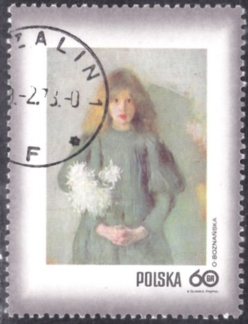 Zum Tag der Briefmarke 1970 gab es in Polen eine Sondermarkenserie mit Motiven zum Thema "Die Frau in der polnischen Malerei". Aus dieser Serie kommt diese Marke (MiNr 2110) mit der Abbildung "Porträt der Frau Fedorowicz" nach einem Gemälde von Witold Pruszkowski (1846-1896).