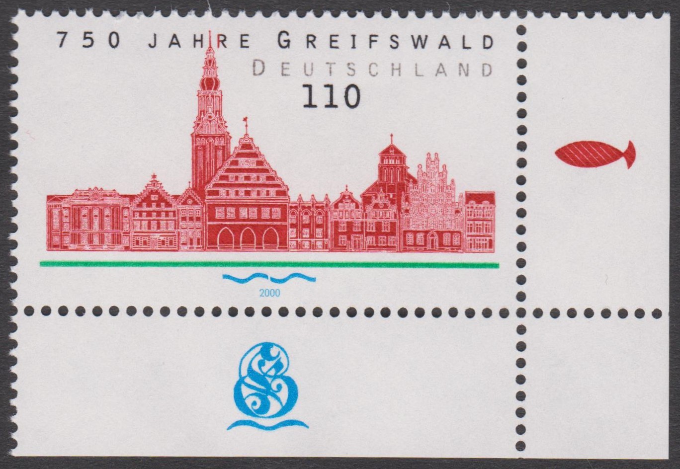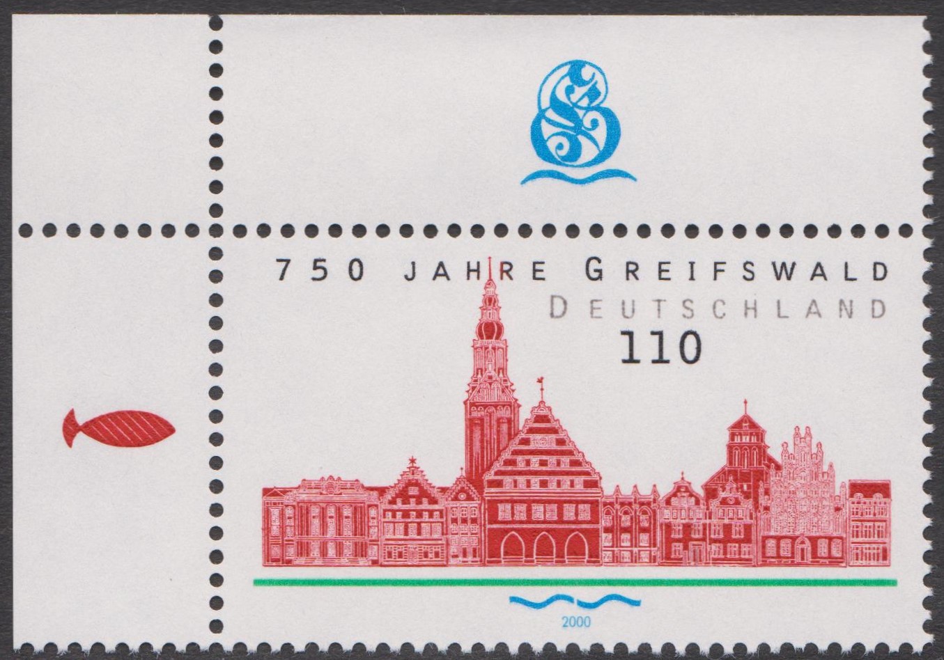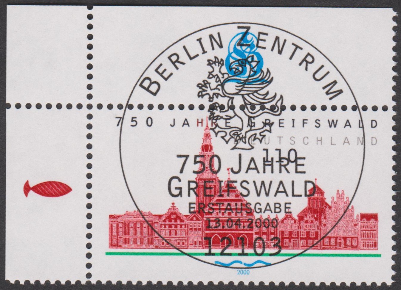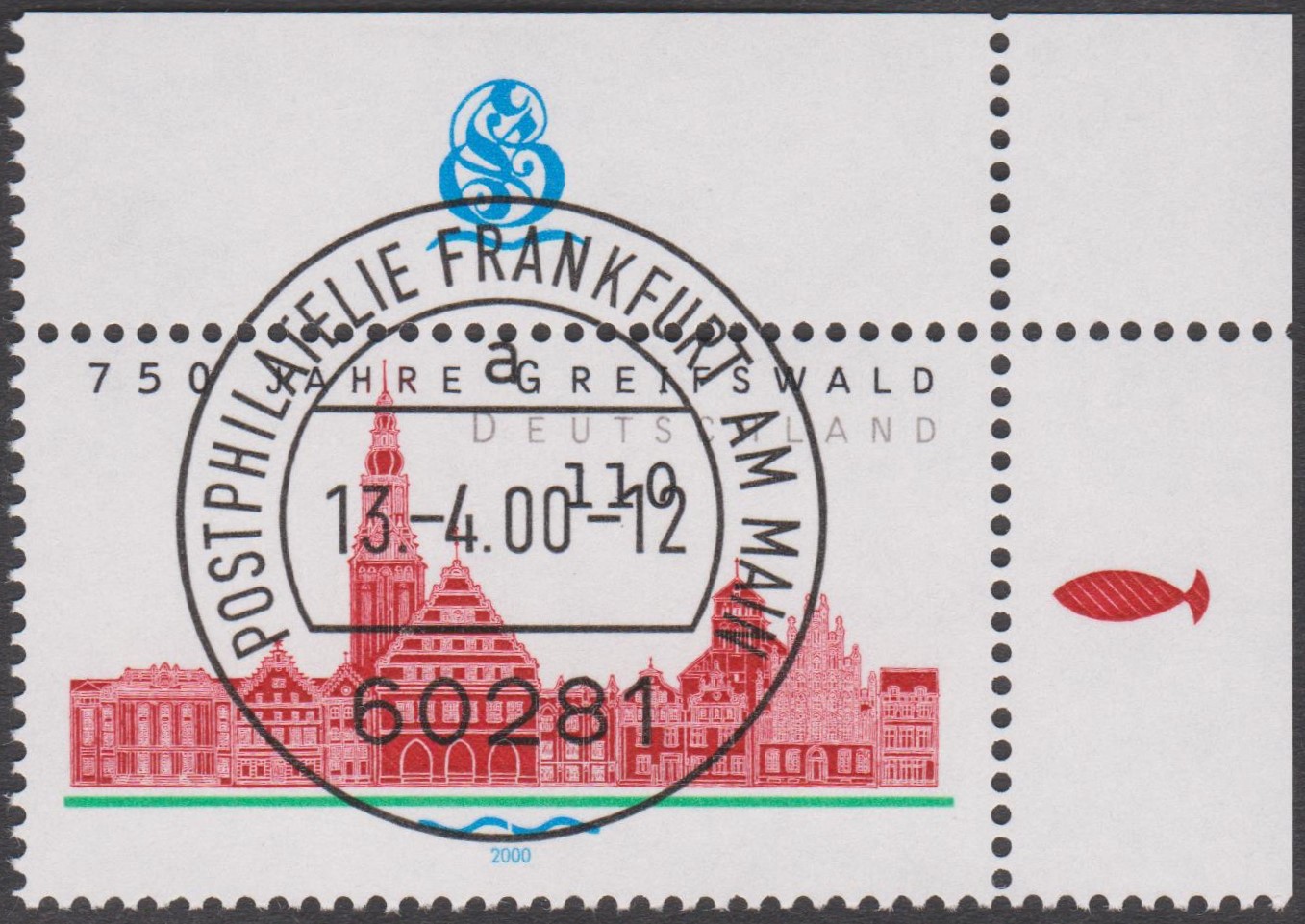BUND MiNr. 2111 erschien am 13.04.2000 aus Anlass "750 Jahre Greifswald", hier auf ETB 21/2000 mit ESST BONN: