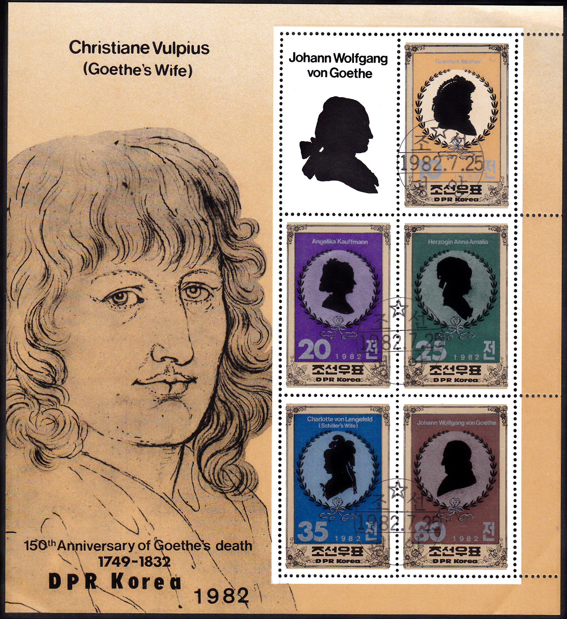 In einer Ausgabe zum 150. Todestag von Johann Wolfgang von Goethe ist in Nord-Korea eine Marke erschienen mit dem Porträt von Angelika Kauffmann nach einem Scherenschnitt. Goethe lernte Angelika Kauffmann kennen und schätzen. Angelika Kauffmann fertigte Illustrationen für Goethes Schauspiel "Iphigenie" an.