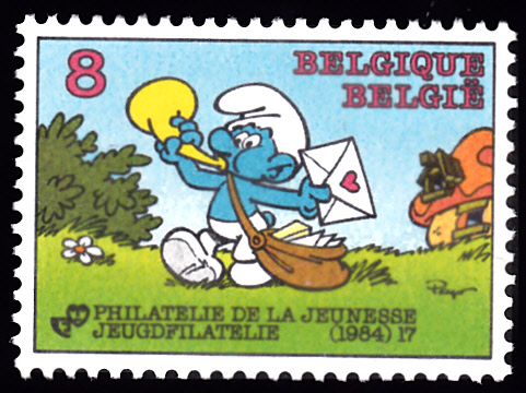 In Belgien ist 1984 eine Marke (MiNr 2202) zum Thema "Jugendphilatelie" mit einem Schlumpf als Postbote erschienen.