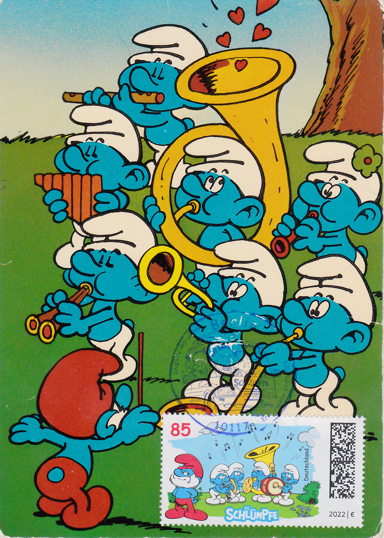In Belgien ist 1984 eine Marke (MiNr 2202) zum Thema "Jugendphilatelie" mit einem Schlumpf als Postbote erschienen.