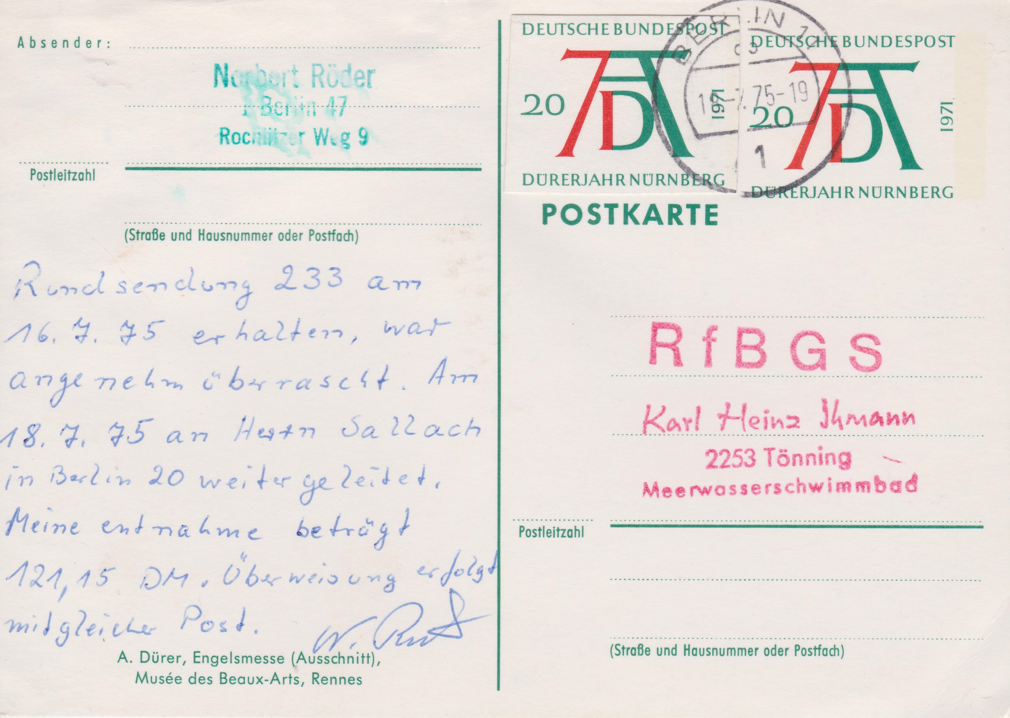 Kleiner Schönheitsfehler: eine Drucksache kostete nicht 60 Pf, sondern lediglich 50 Pf Porto! Der Beleg ist somit um 10 Pf überfrankiert!