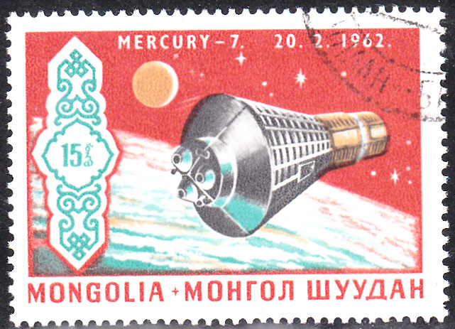 Im Jemen-Nord erschien 1969 in einer Serie "Bemannte Raumfahrt" diese Marke (MiNr 946), die auch an den Flug von Mercury 8 von W. Schirra erinnert (unten links).