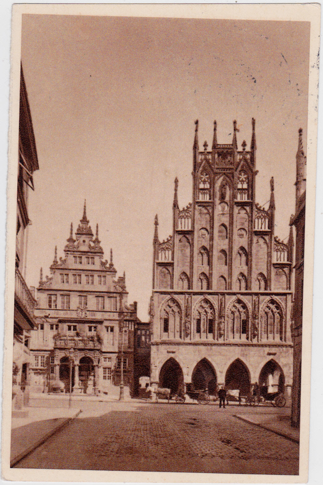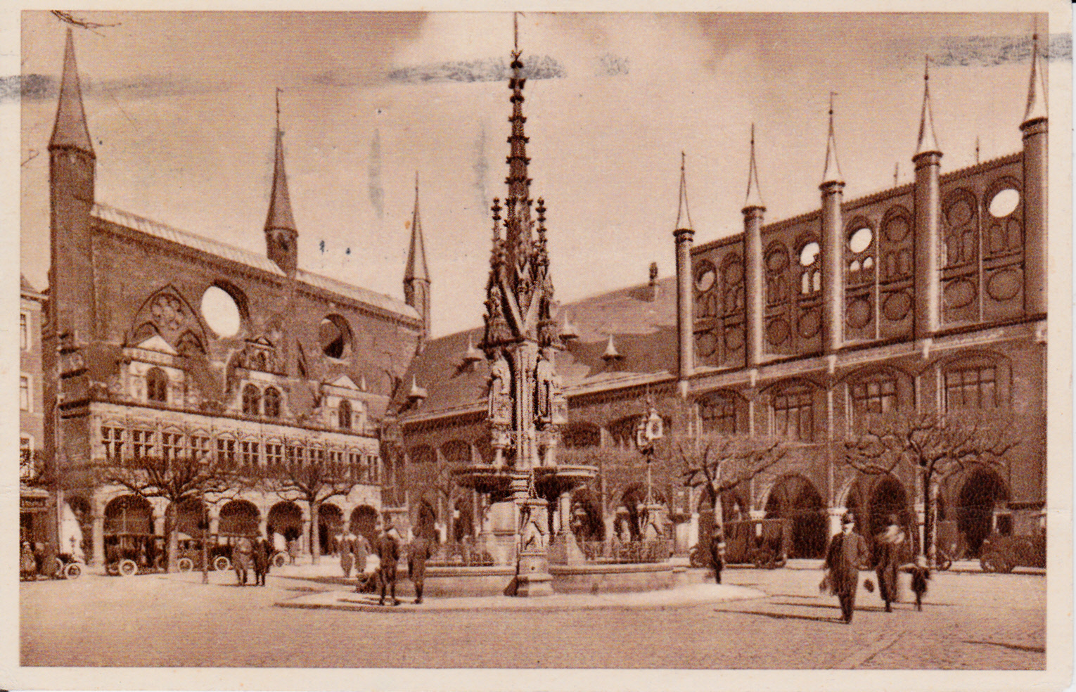 Der Marktplatz mit dem Rathaus in Lübeck dient als Motiv für die Karte mit Bild 82.