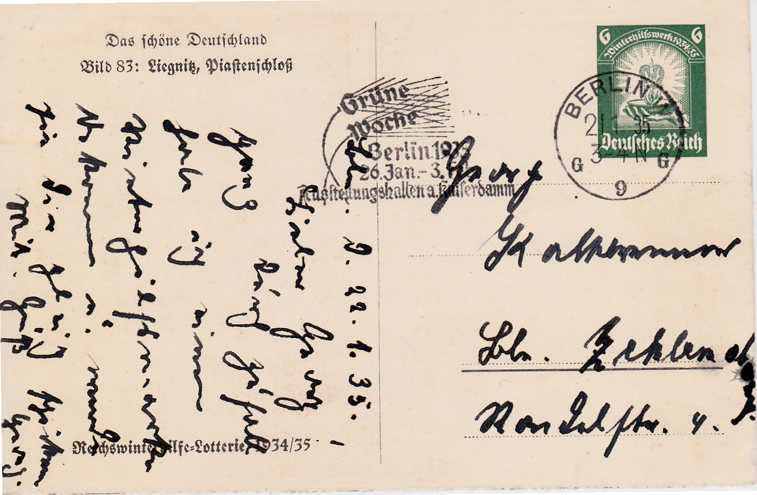 Die Sonderpostkarte für das Winterhilfswerk zeigt auf Bild 83 das Piastenschloss in Liegnitz..