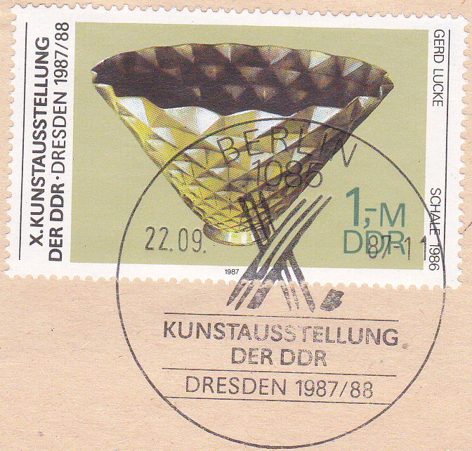 Auf einer Marke (MiNr 3127) aus der Serie "Kunstausstellung der DDR in Dresden" sehen wir eine Schale von Gerd Lucke.