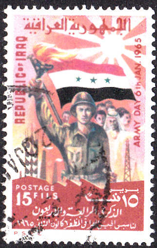 Diese Marke aus dem Irak (MiNr 398) zum Tag der Armee zeigt einen Soldaten mit Schutzhelm.