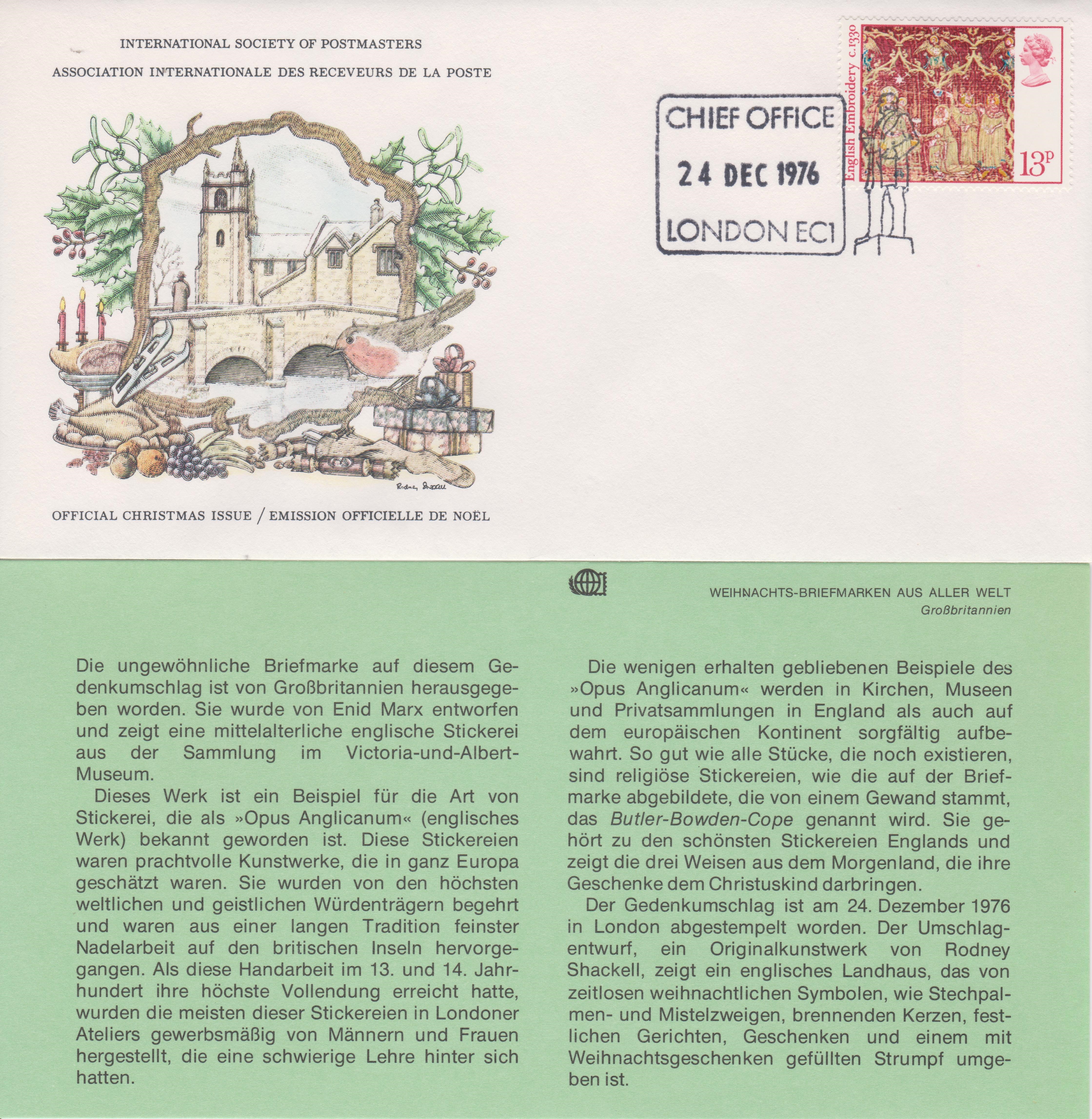 Schmuckbrief aus Großbritannien mit Stempel "CHIEF OFFICE LONDON ECI" vom 24.12.1976: