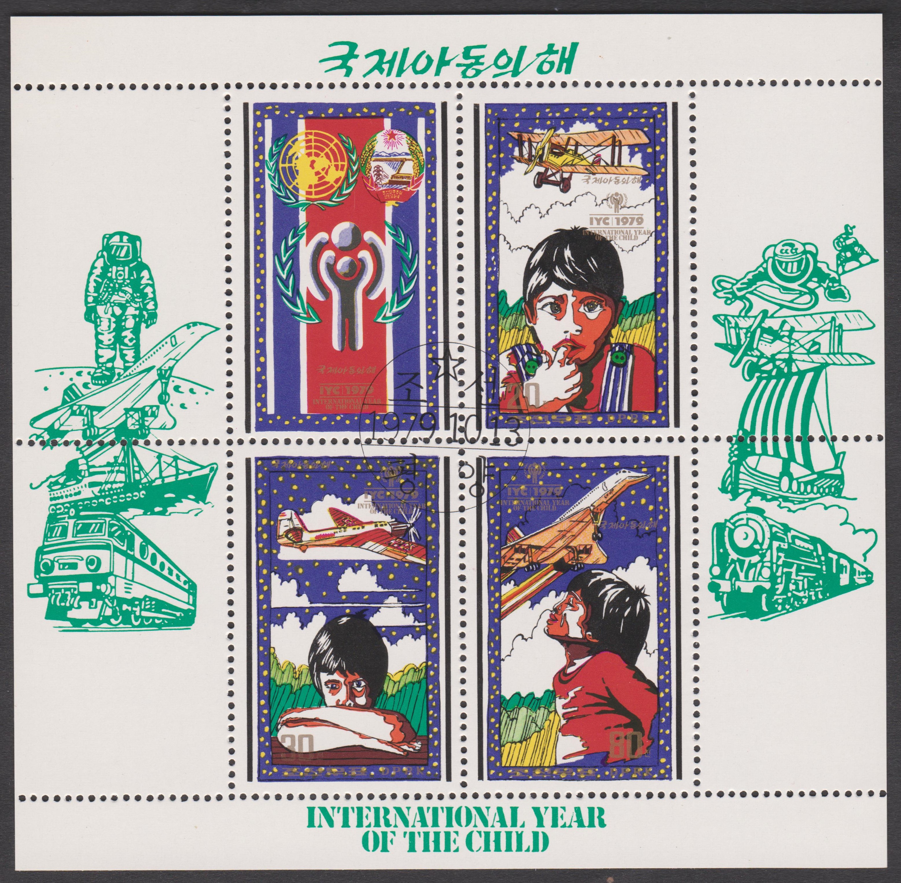 Dieser Block 64 A erschien zum Internationalen Jahr des Kindes und zeigt Kinder sowie Flugzeuge: