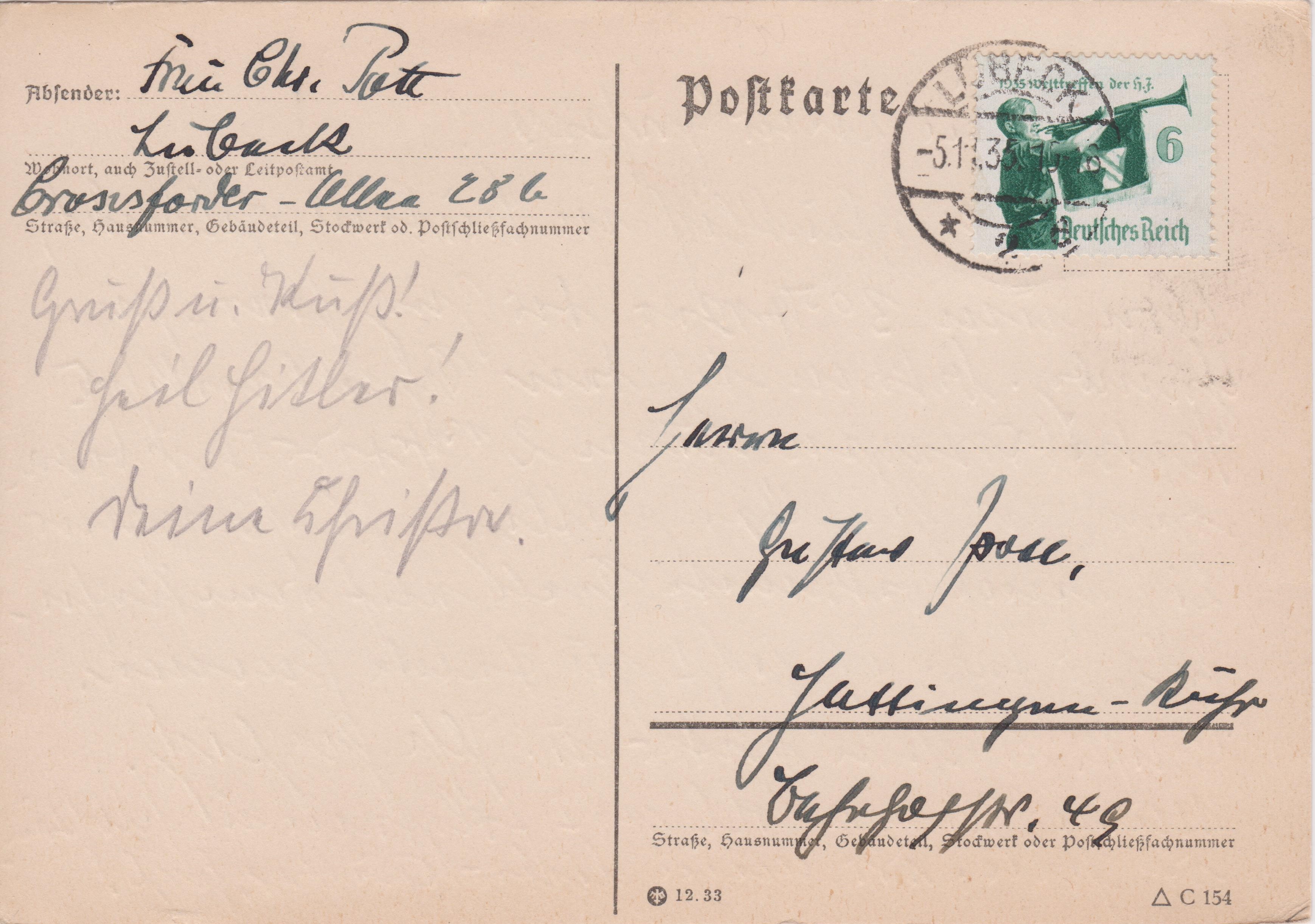 MiNr. 584, am 05.11.1935 auf einer Postkarte ab LÜBECK portogerecht als Postkarte im Fernverkehr: