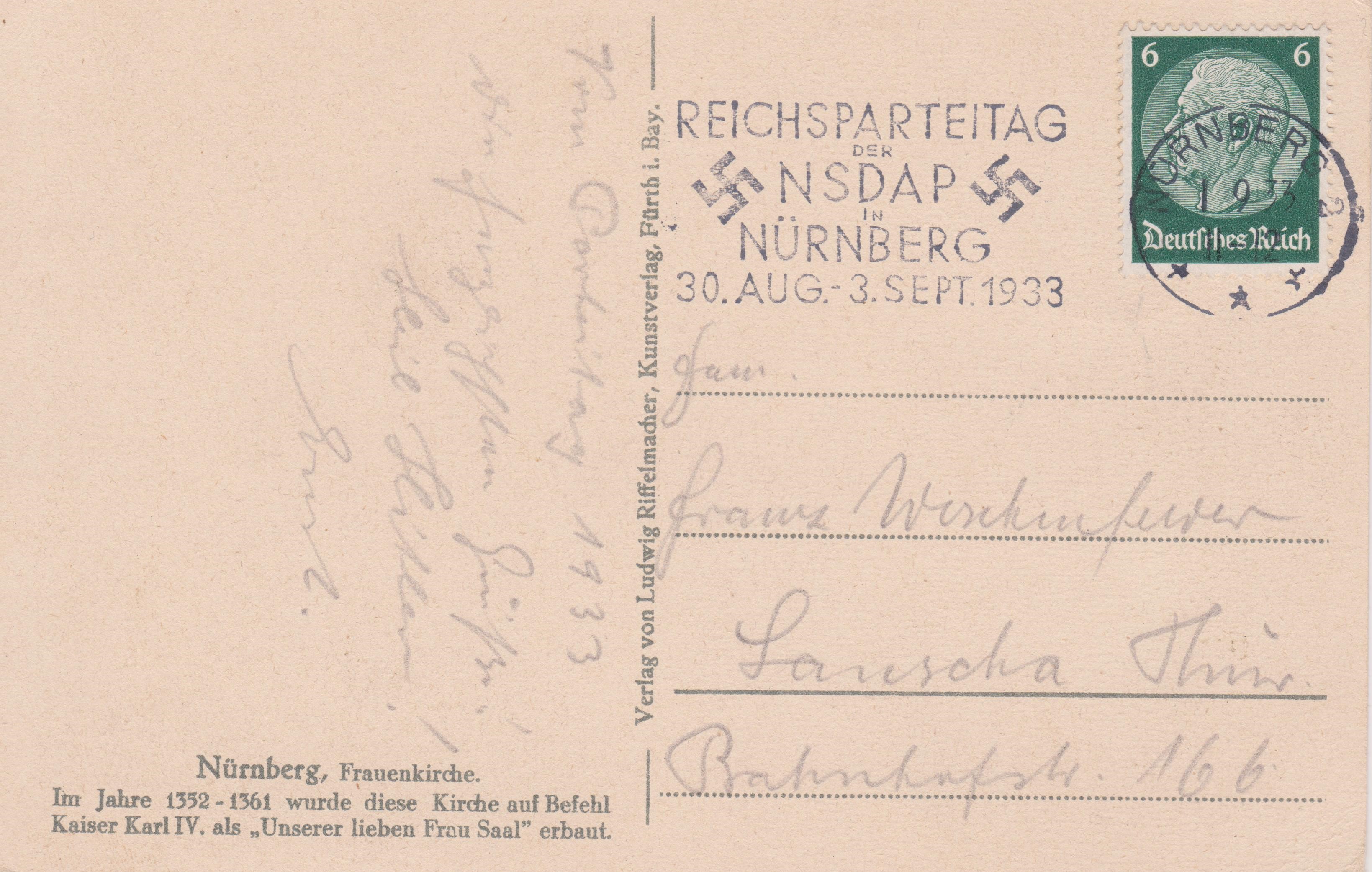 Das Postwertzeichen hat eine Firmenlochung "HL", die nicht zur Absenderangabe "Fritz Scharte" paßt: