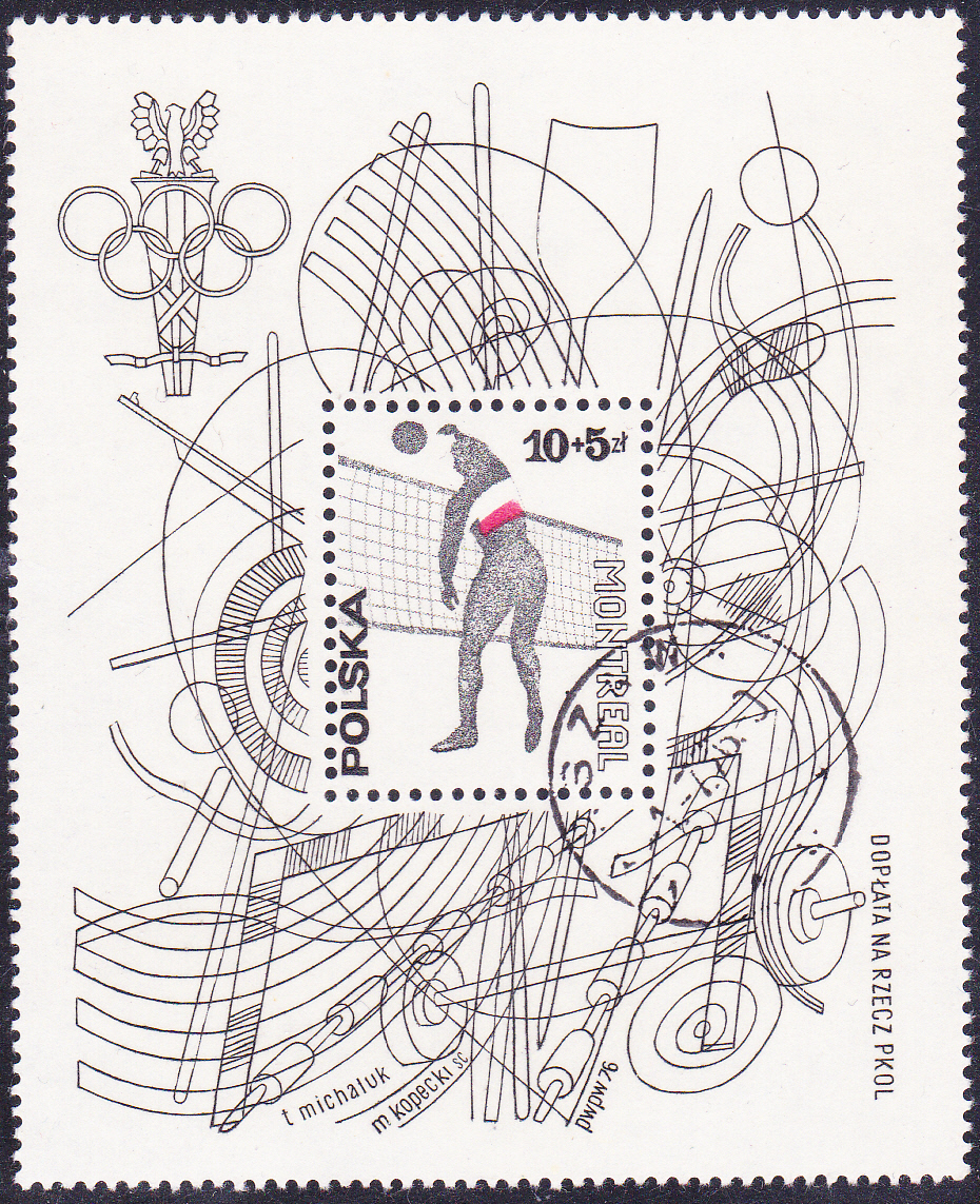 Zu dieser Ausgabe aus Polen gehört auch noch ein Block (MiNr Block 65 mi Marke MiNr 2458). Die Marke zeigt einen Volleyballspieler am Netz.