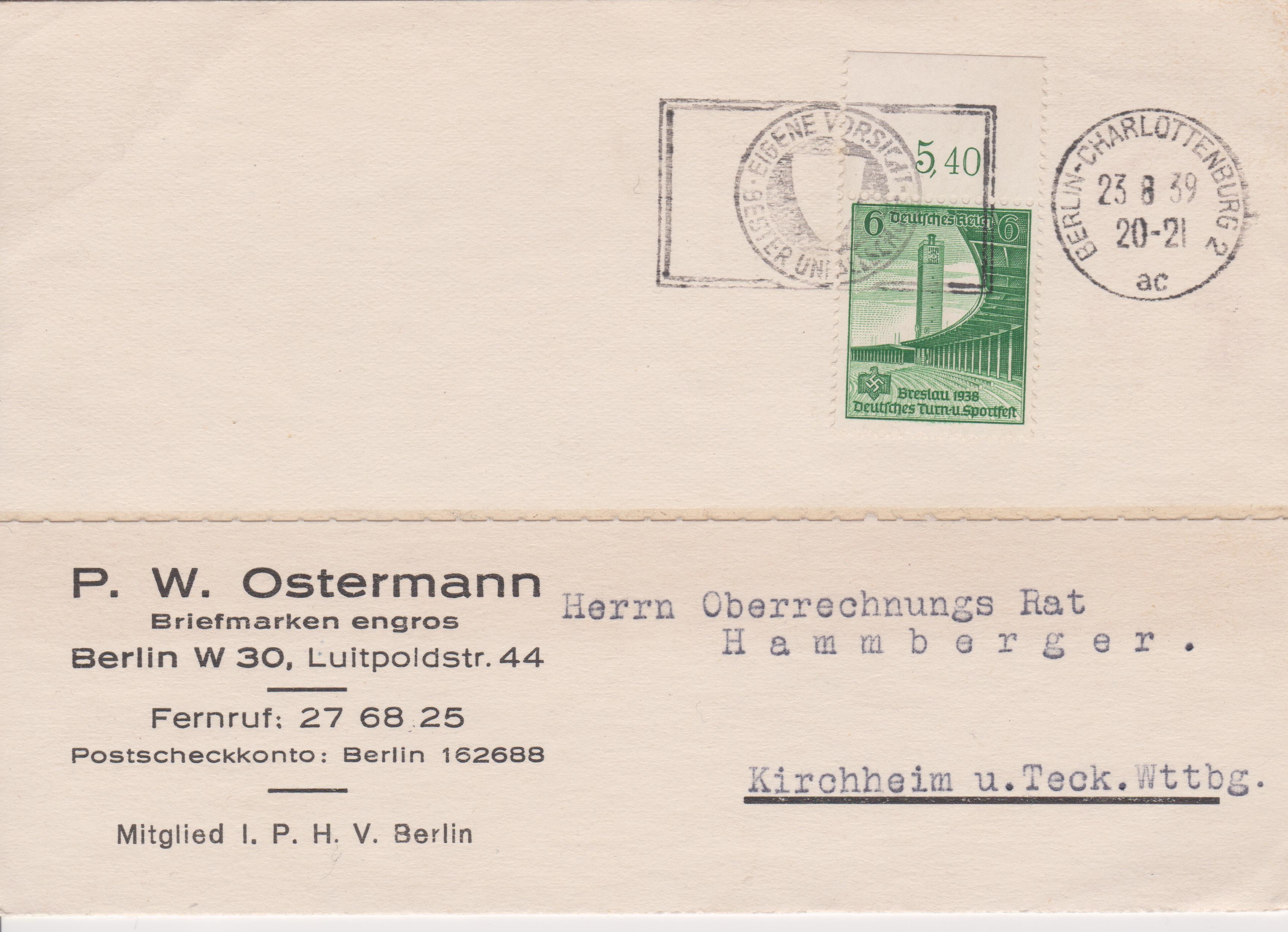 Das Porto für eine Postkarte nach Holöland betrug 15 Pf und somit ist dieses Exemplar um 2 Pfennig überfrankiert, was mich bei der Seltenheit eines solchen Stückes aber überhaupt nicht stört!