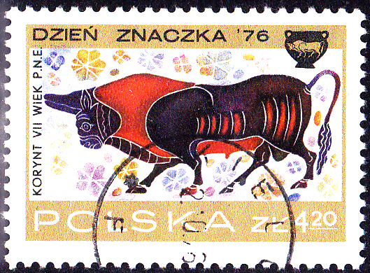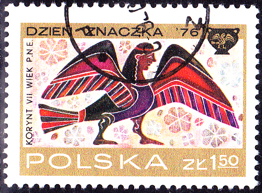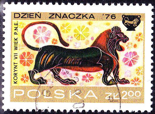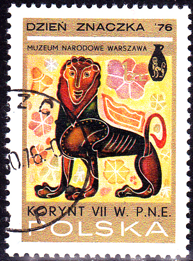 Zum Tag der Briefmarke 1976 sind in Polen in einer Serie Marken mit Korinthischen Vasenmalereien aus dem 7. Jahrhundert vor Christi erschienen. Auf der Marke zu 1 Zloty (MiNr 2461) wird eine Sphinx gezeigt.
