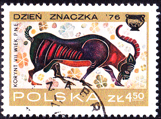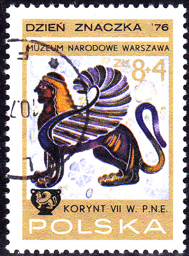 Zum Tag der Briefmarke 1976 sind in Polen in einer Serie Marken mit Korinthischen Vasenmalereien aus dem 7. Jahrhundert vor Christi erschienen. Auf der Marke zu 1 Zloty (MiNr 2461) wird eine Sphinx gezeigt.