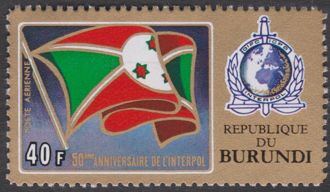 Burundi MiNr. 926A-930A (= gezähnt) sowie Burundi MiNr. 926B-930B (= geschnitten) erschienen am 19.05.1973 aus Anlass "50 Jahre Interpol":