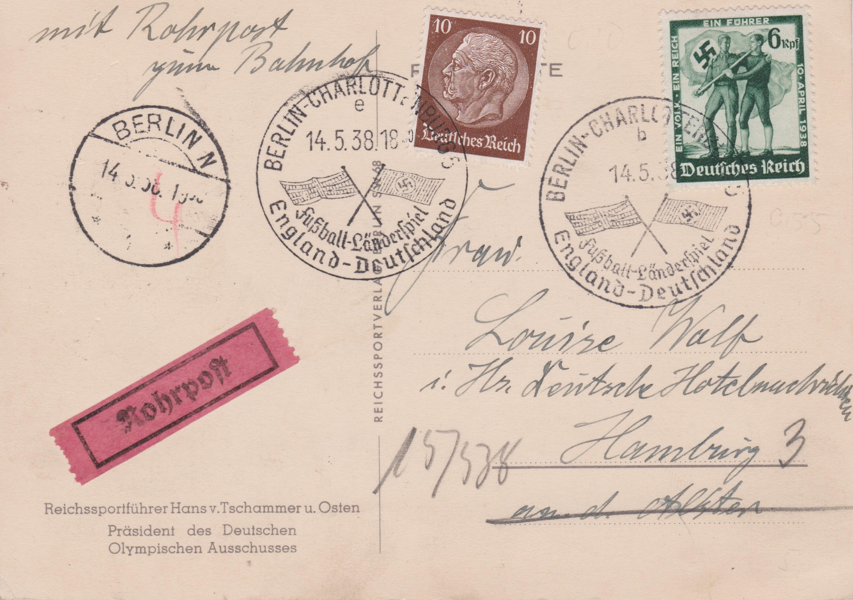 Faltbrief der Staatsanwaltschaft mit Freistempelabdruck und dem entsprechenden "Rohrpost und Eilboten" - Zettel