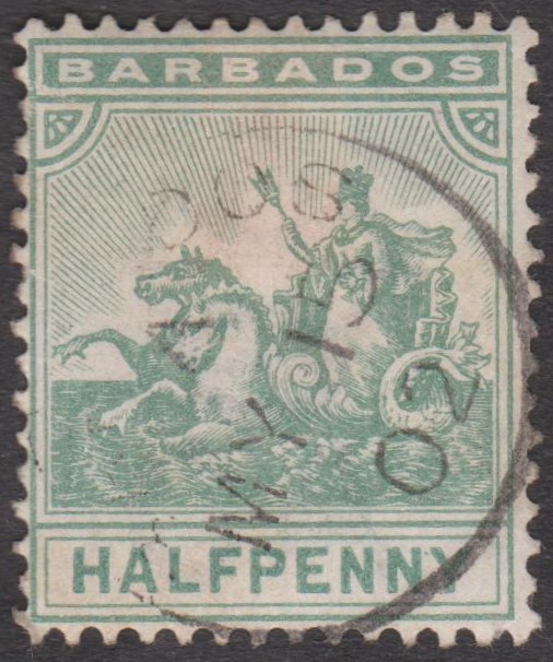 Im Juli 1892 erschien diese Freimarke in der Wertstufe "HALF PENNY", Barbados MiNr. 43: