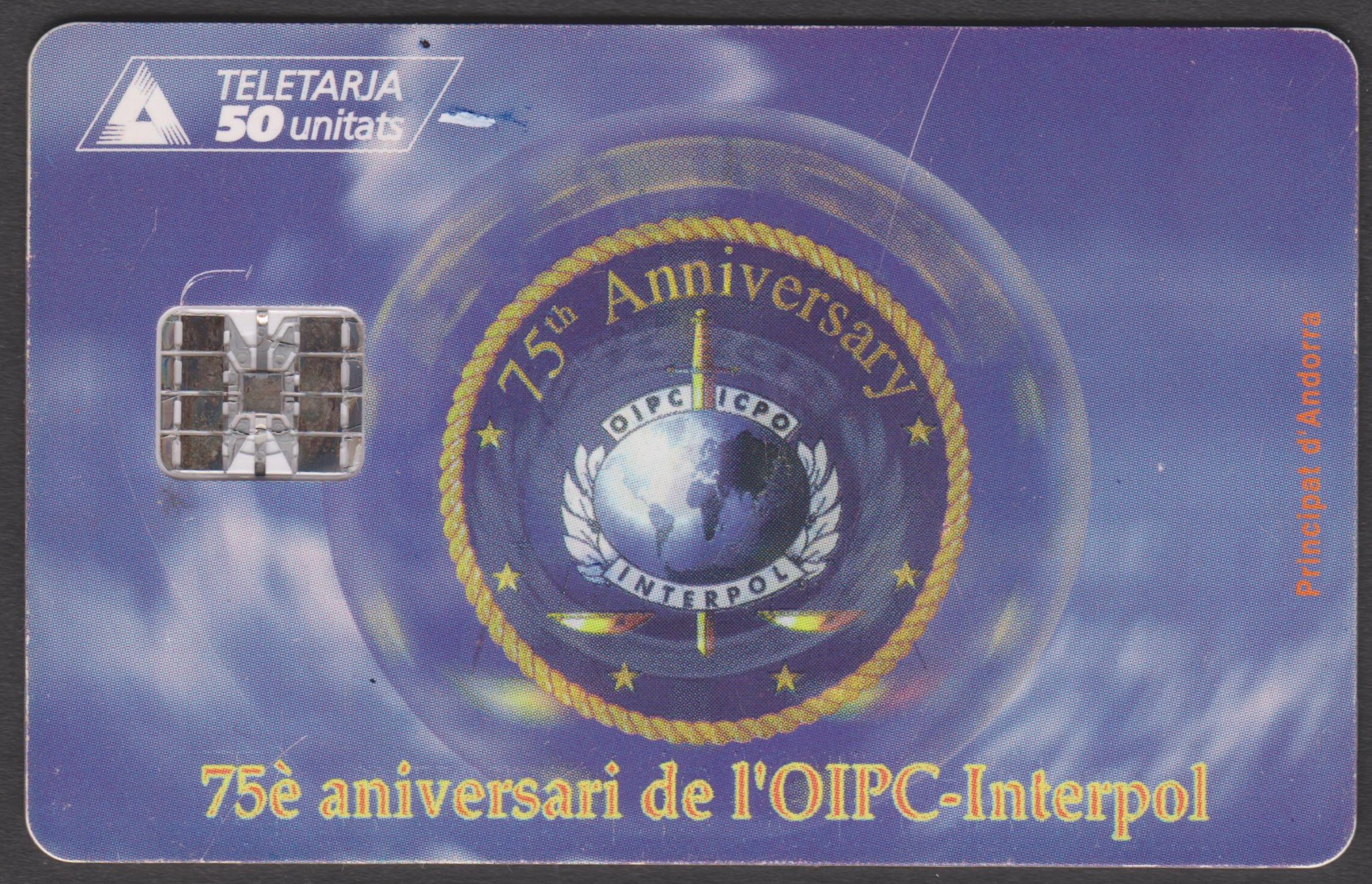 Telefonkarte "75è aniversari de l´OIPC-Interpol" aus Andorra, Auflage 10.000 Stück in "06/ 98":