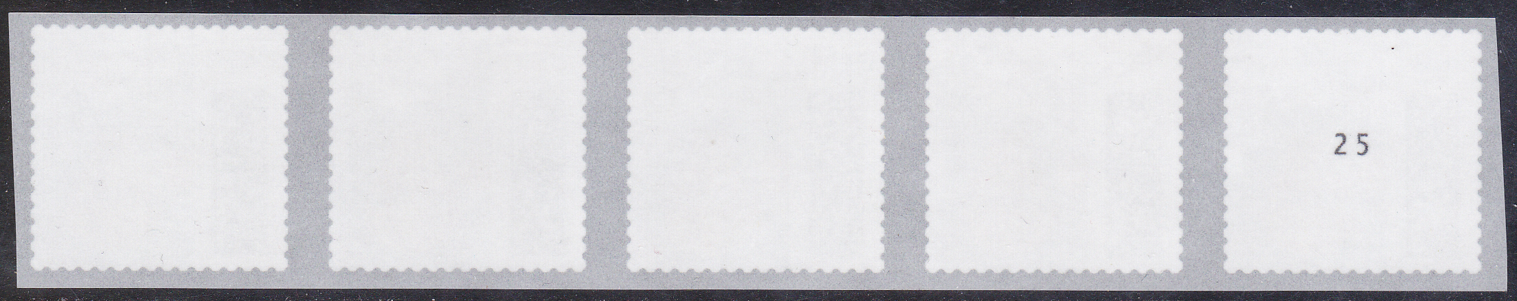 Auf der Trägerfolie der Rollenmarken befindet sich rückseitig bei jeder 5. Marke eine Zählnummer.