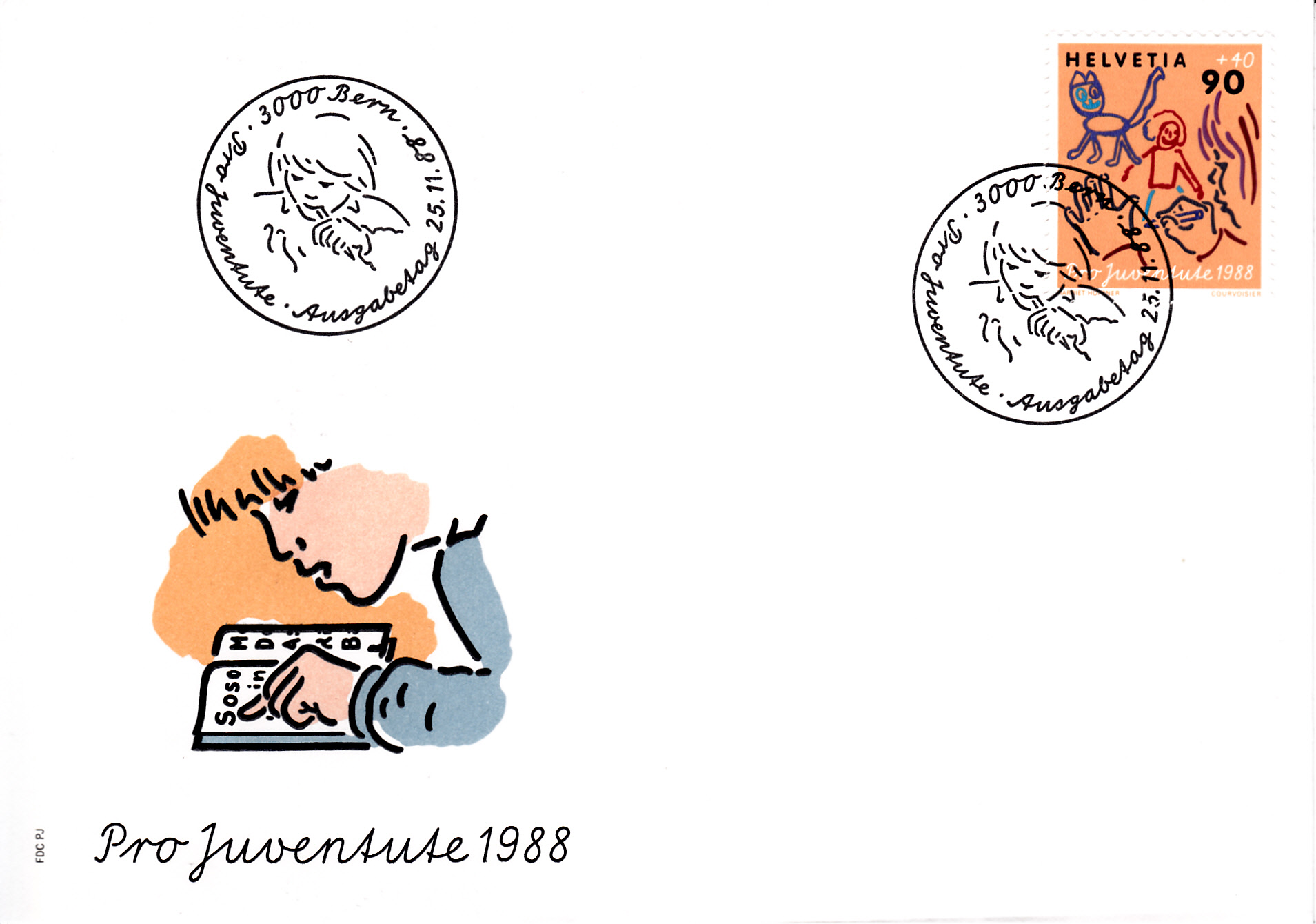 FDC mit dieser Marke aus der Serie "Pro Juventute" 1988 der Schweiz (MiNr 1384).