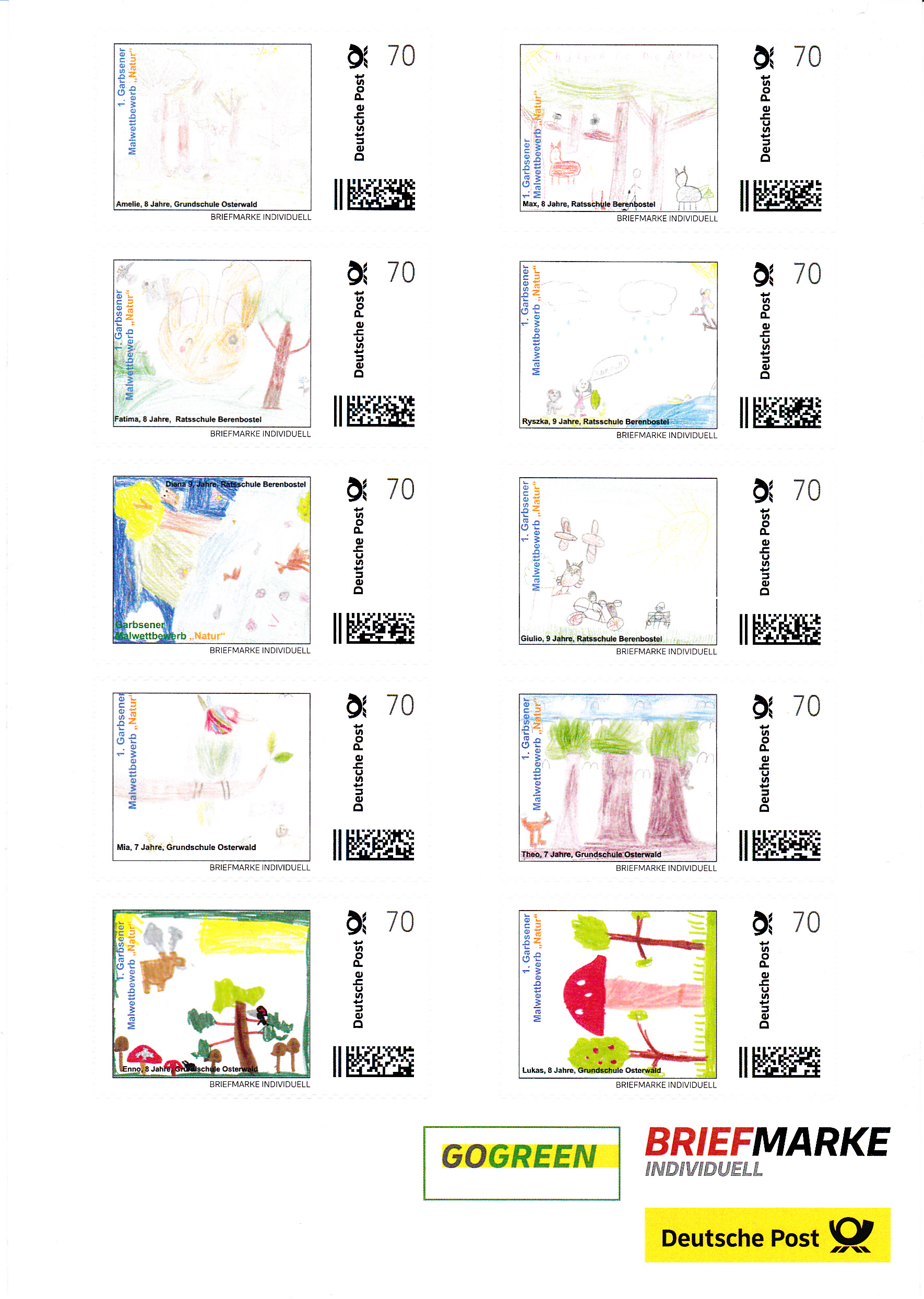 Dieser Zehnerbogen mit Marken individuell zeigt 10 Motive mit Kinderzeichnungen.