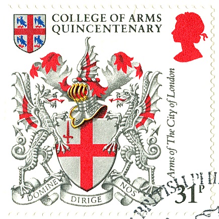 Hier ein paar sehr prachtvolle Arbeiten auf britischen Marken des Jahres 1984, in deren Mittelpunkt die Farben und Schilde, aber auch die Helme mit ihren Helmzierden, beeindrucken.
