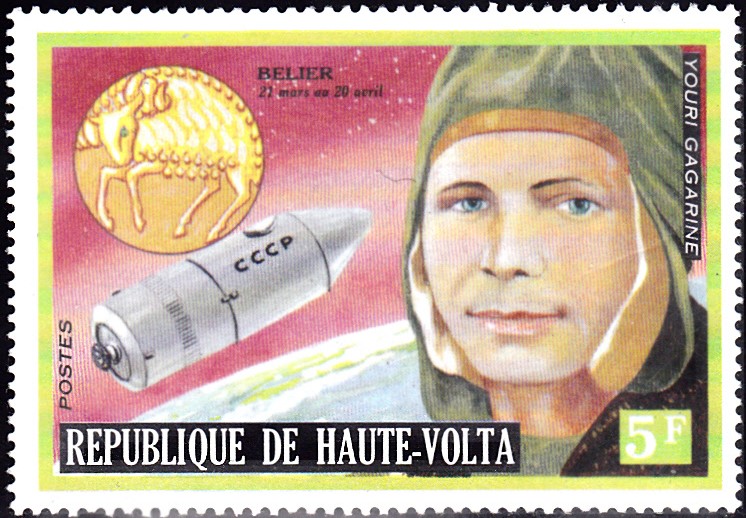 In einer Serie "Persönlichkeiten und ihre Tierkreiszeichen" ist in Obervolta diese Marke (MiNr 483) mit einem Porträt von Jury Gagarin erschienen. Die Marke ordnet Gagarin dem Tierkreiszeichen "Widder" (geb. zwischen 21. März und 20. April) zu. Da Gagarin aber am 9. März 1934 in Kluschino geboren ist, ist diese Zuordnung falsch.