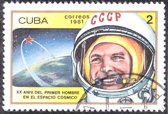 In der Serie "20. Jahrestag des ersten bemannten Weltraumfluges" erschien in Kuba diese Marke (MiNr 2549) mit Jury Gagarin.
