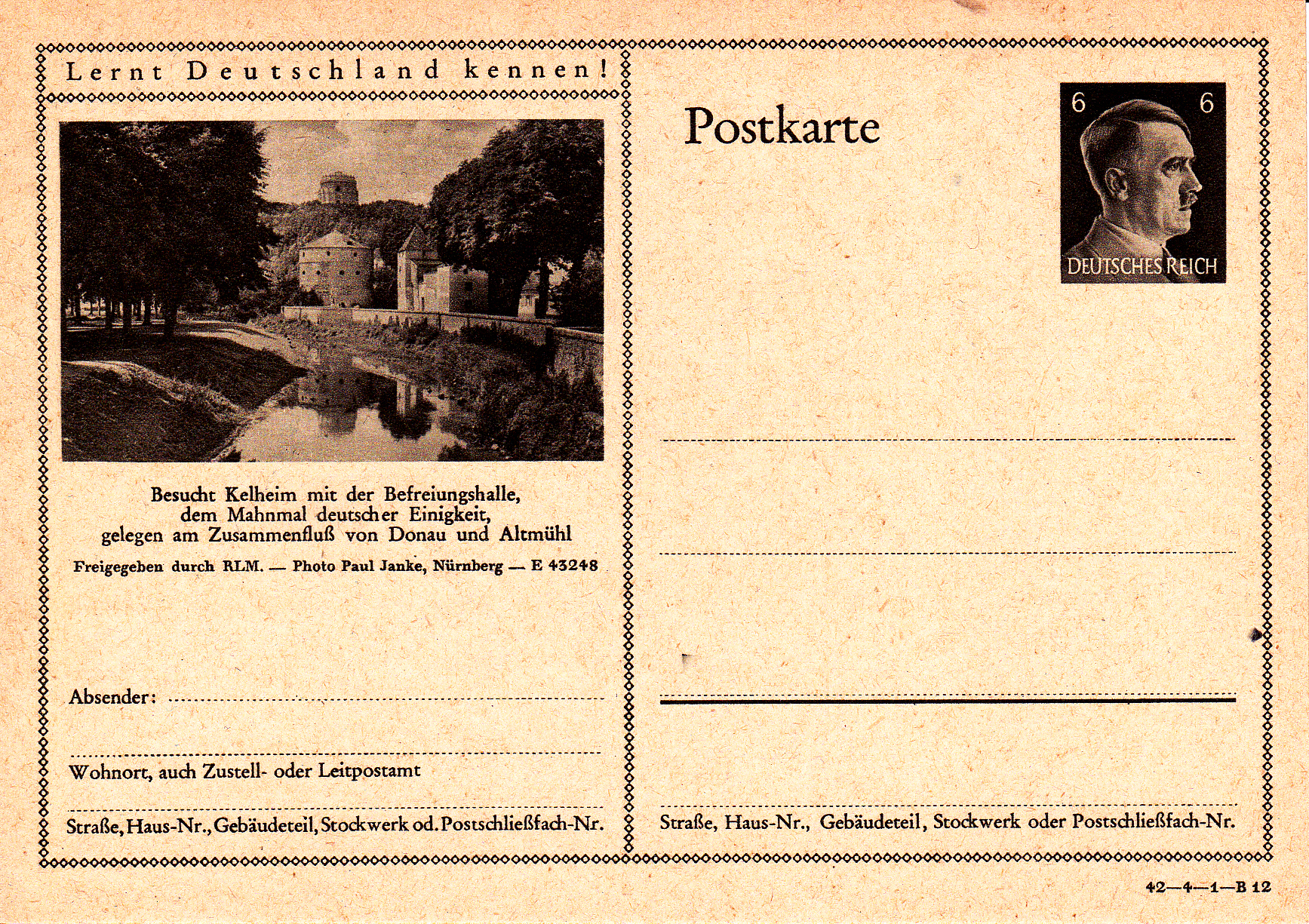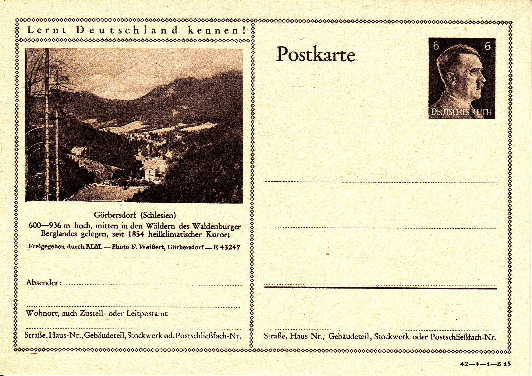 Ich beginne mit der Karte mit dem Druckvermerk 42-4-1-B1 (Ausgabejahr 1942-Serie 4-Druckplatte 1-Bild 1; bei weiteren Karten nenne ich jeweils die Serie und die Bildnummer, die Druckplattennummer nur, wenn es verschiedene Druckplattennummern bei der jeweiligen Serie gibt).