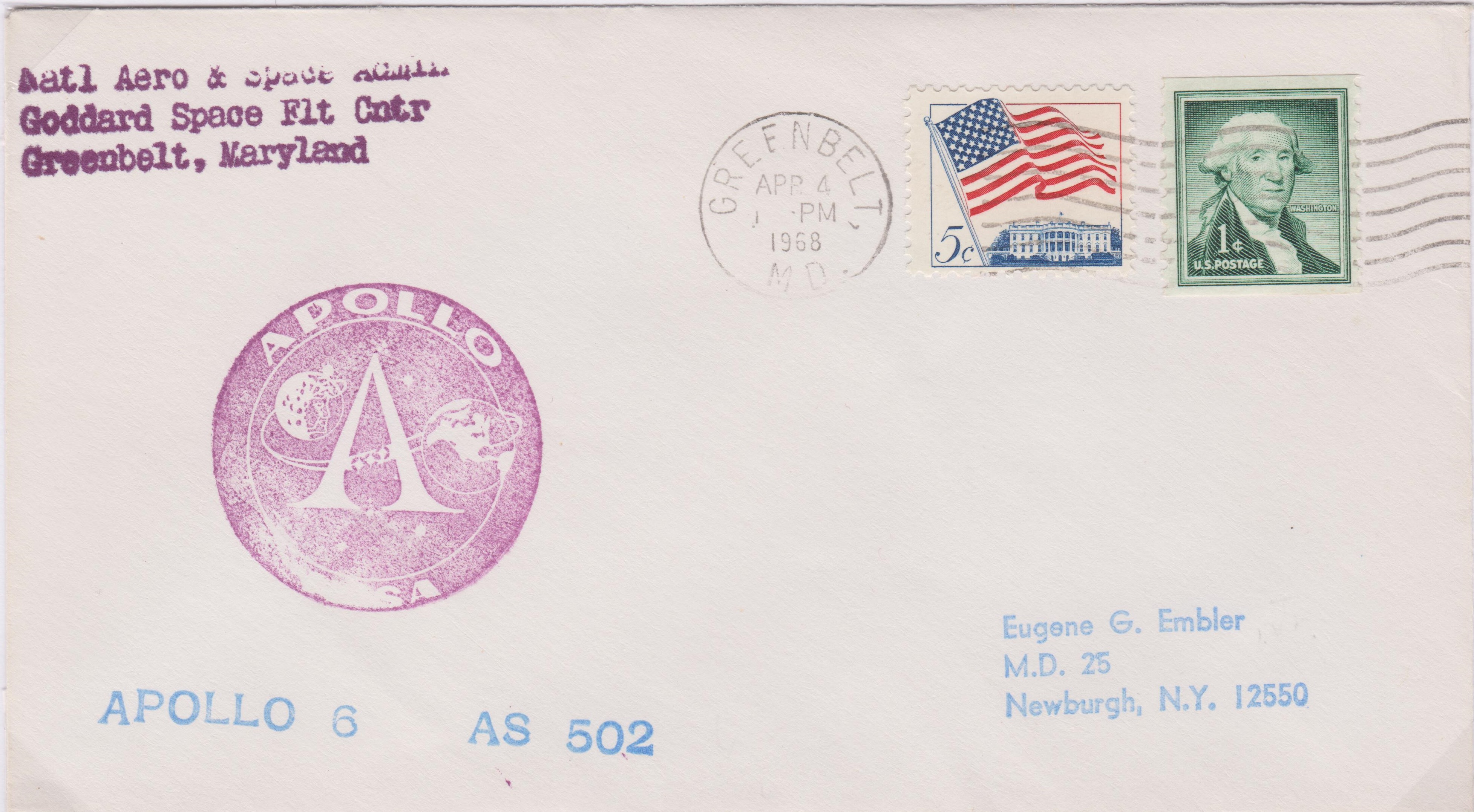 Beleg von der APOLLO 6 - Trackingstation in GREENBELT, Maryland: