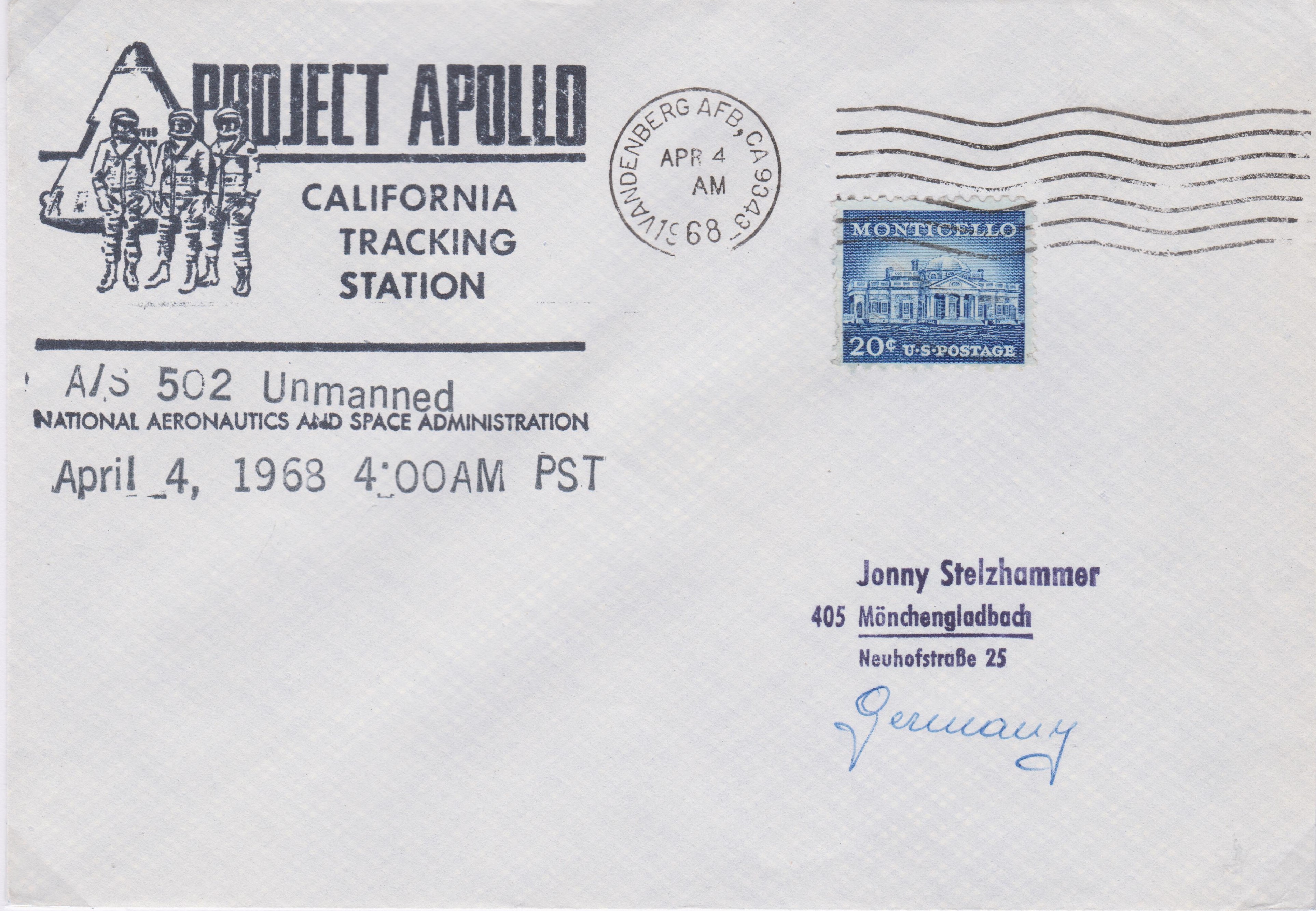 Beleg von der APOLLO 6 - Trackingstation in VANDENBERG, CALIFORNIA: