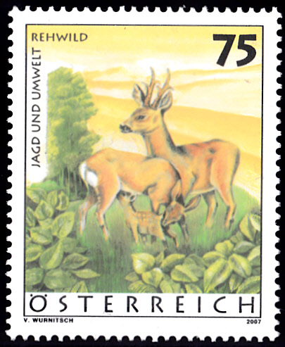 In der Serie "Jagd und Umwelt" ist in Österreich eine Marke (MiNr 2640) mit Rehfamilie (Capreolus capreolus) in einer Grünlandschaft erschienen.