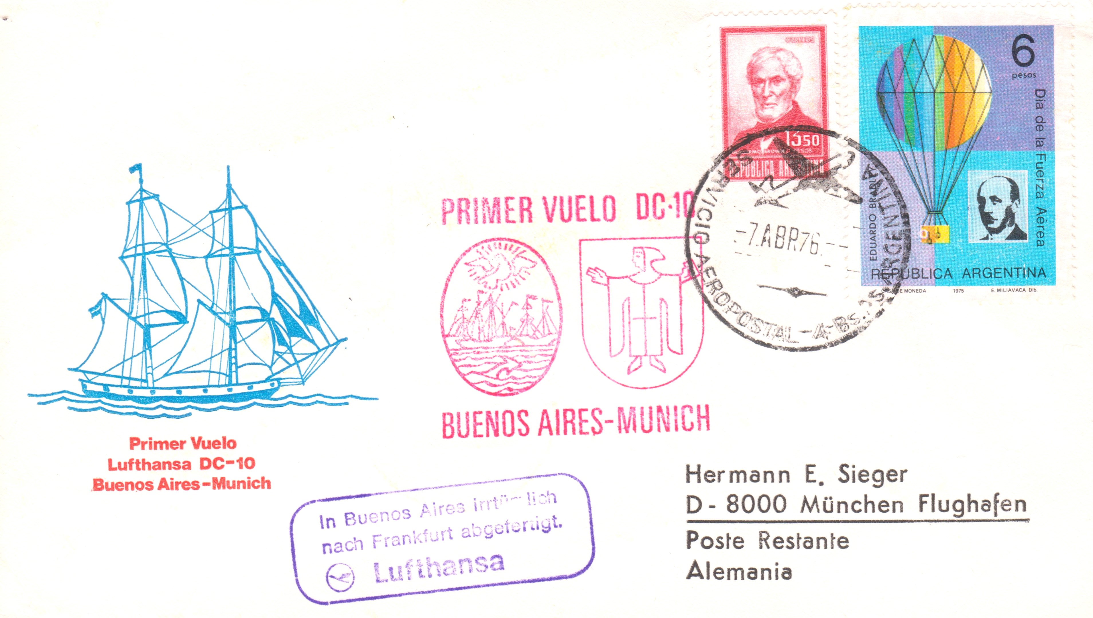 Eine Marke aus Paraguay (MiNr 2677) aus dem Block (MiNr Block 246) zeigt unter anderem links unten eine Douglas DC-10 der Deutschen Lufthansa. Bei dem gezeigten Block handelt es sich um einen "Muster"-Block.