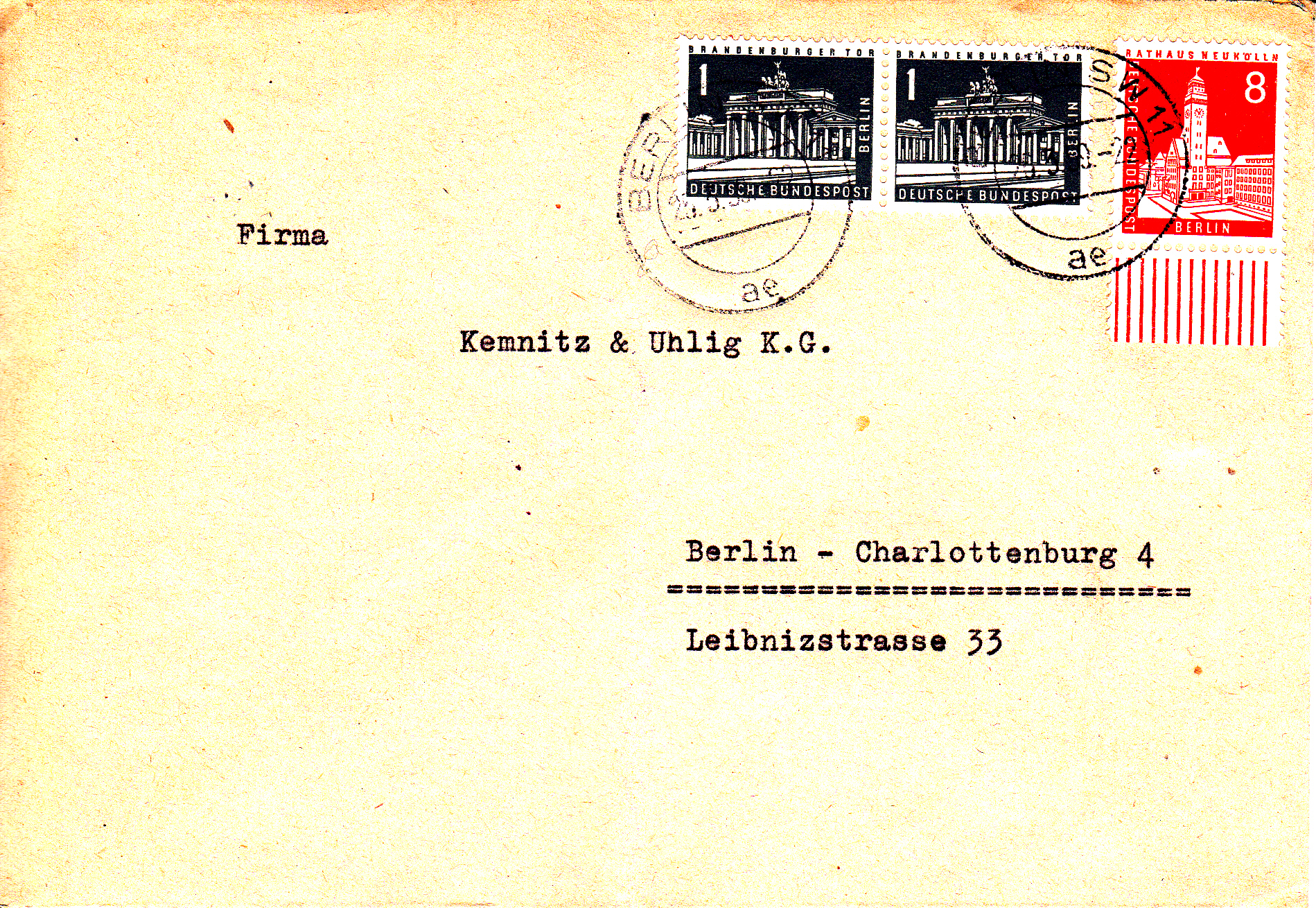 Im Zeitraum vom 1.9.1948 bis zum 28.2.1963 (in der französischen Zone erst am 4.10.1948 und in Berlin(West) erst ab 1.6.1949) kostete ein Standardbrief im Ortsverkehr in der Bundesrepublik 10Pf. In Berlin galt dieser Tarif bis zum 30.6.1972.
