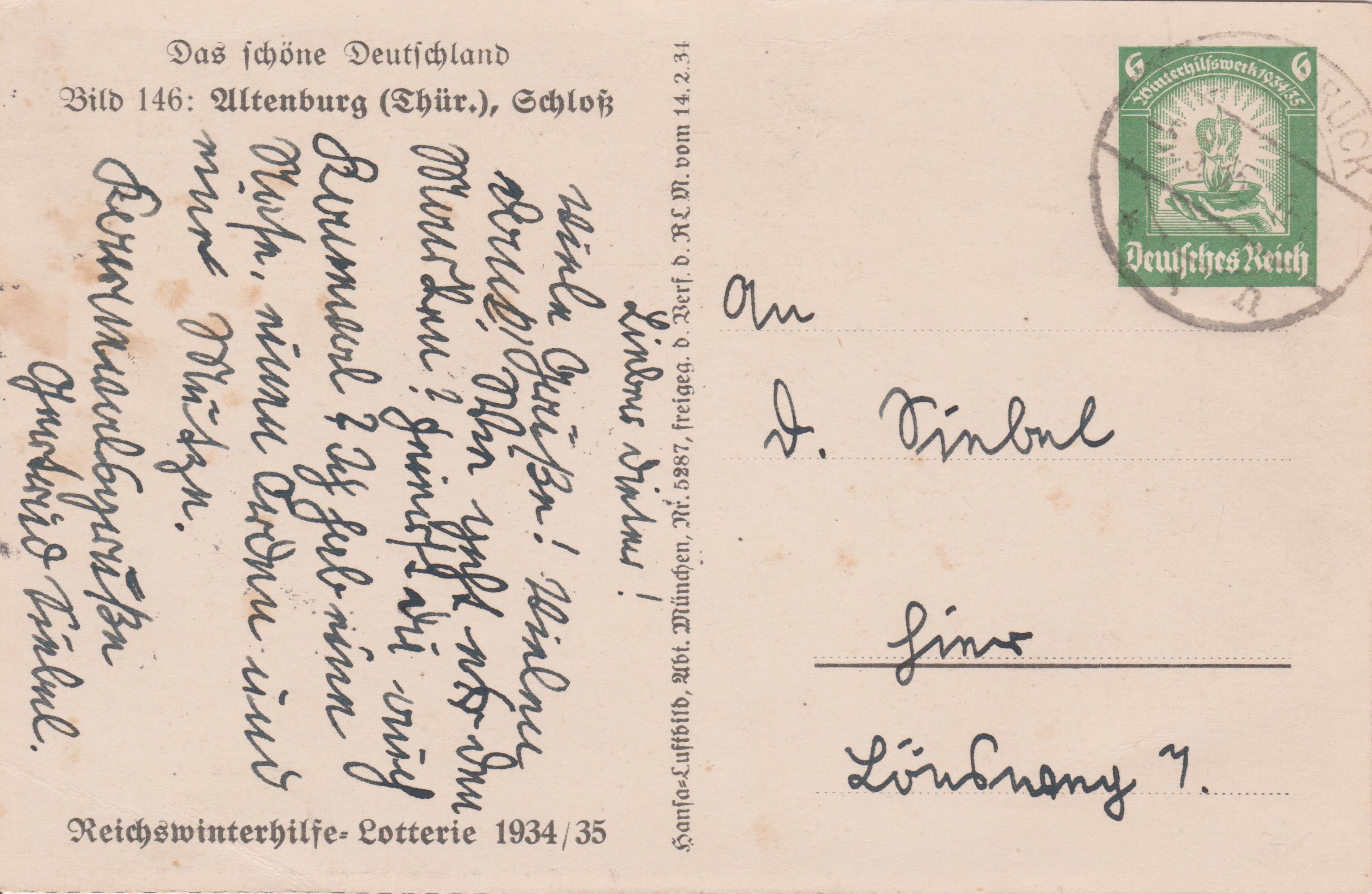 Ganzsache Deutsches Reich P 254 Bild 146 zeigt "Altenburg (Thür.), Schloß":