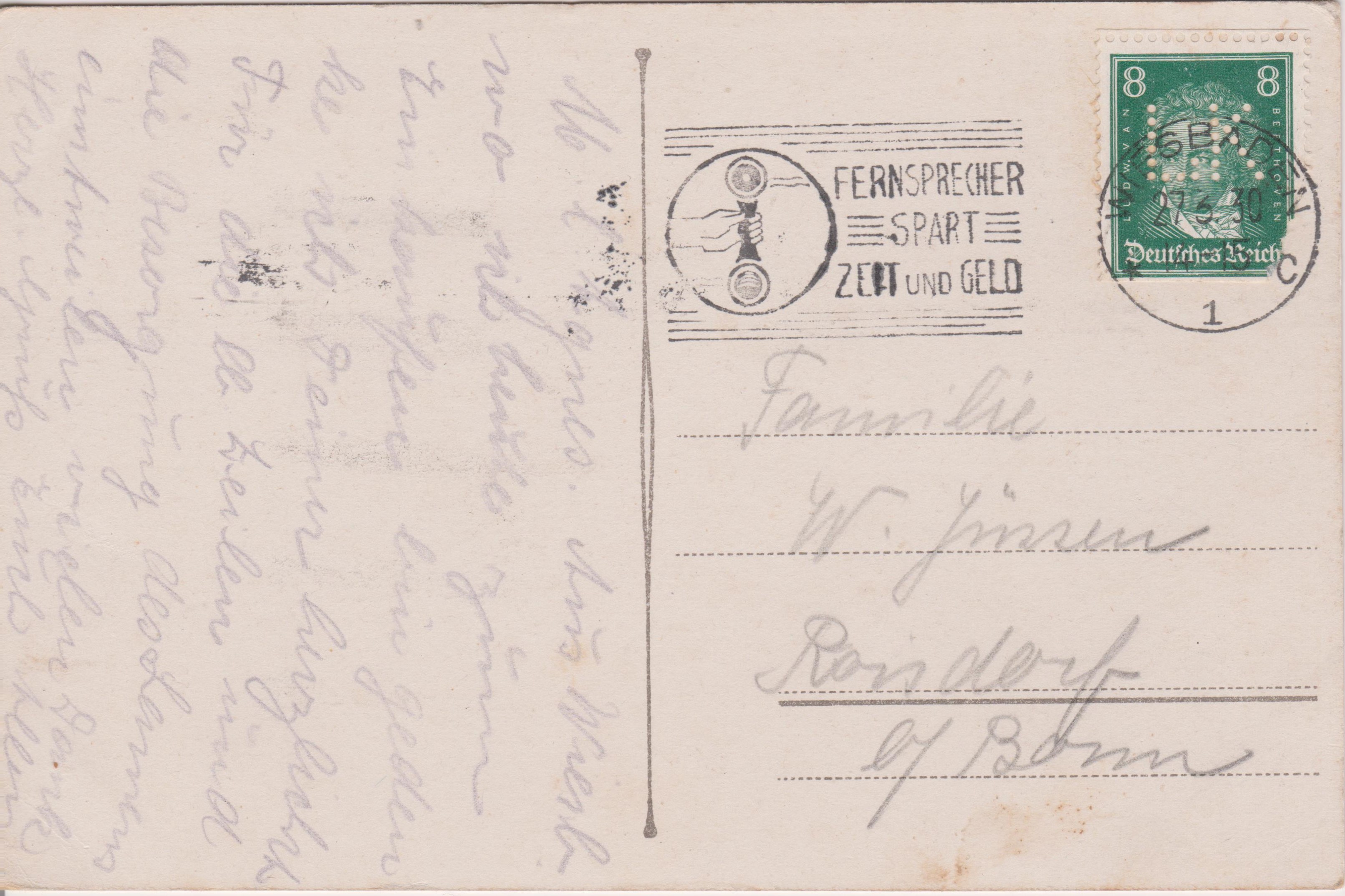 Das Postwertzeichen hat eine Firmenlochung "LK", obwohl es sich sichtlich um eine private Postkarte handelt!???