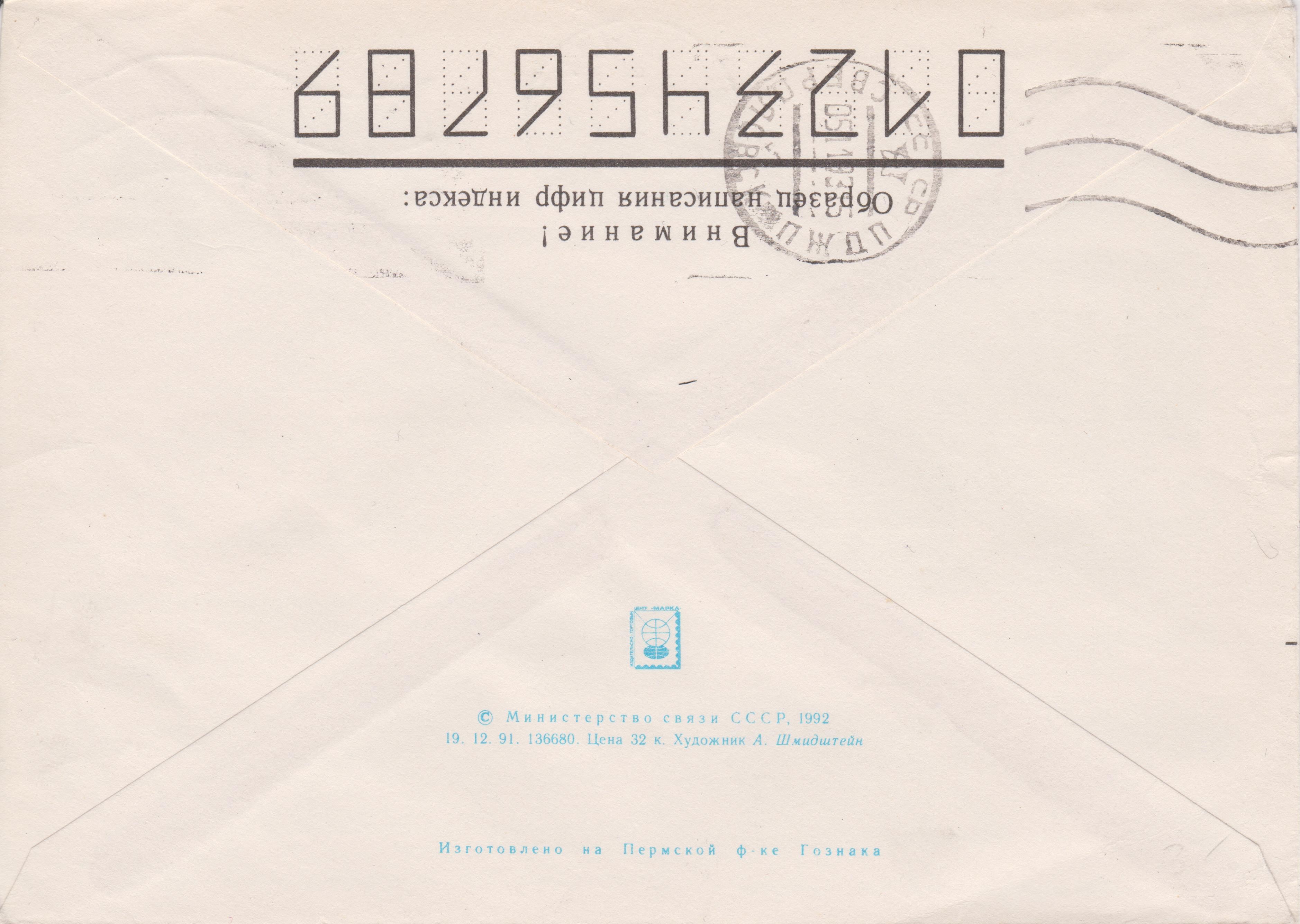 Hier ein weiteres Exemplar dieser Ganzsache mit rückseitigem Druckdatum "19. 12. 91":