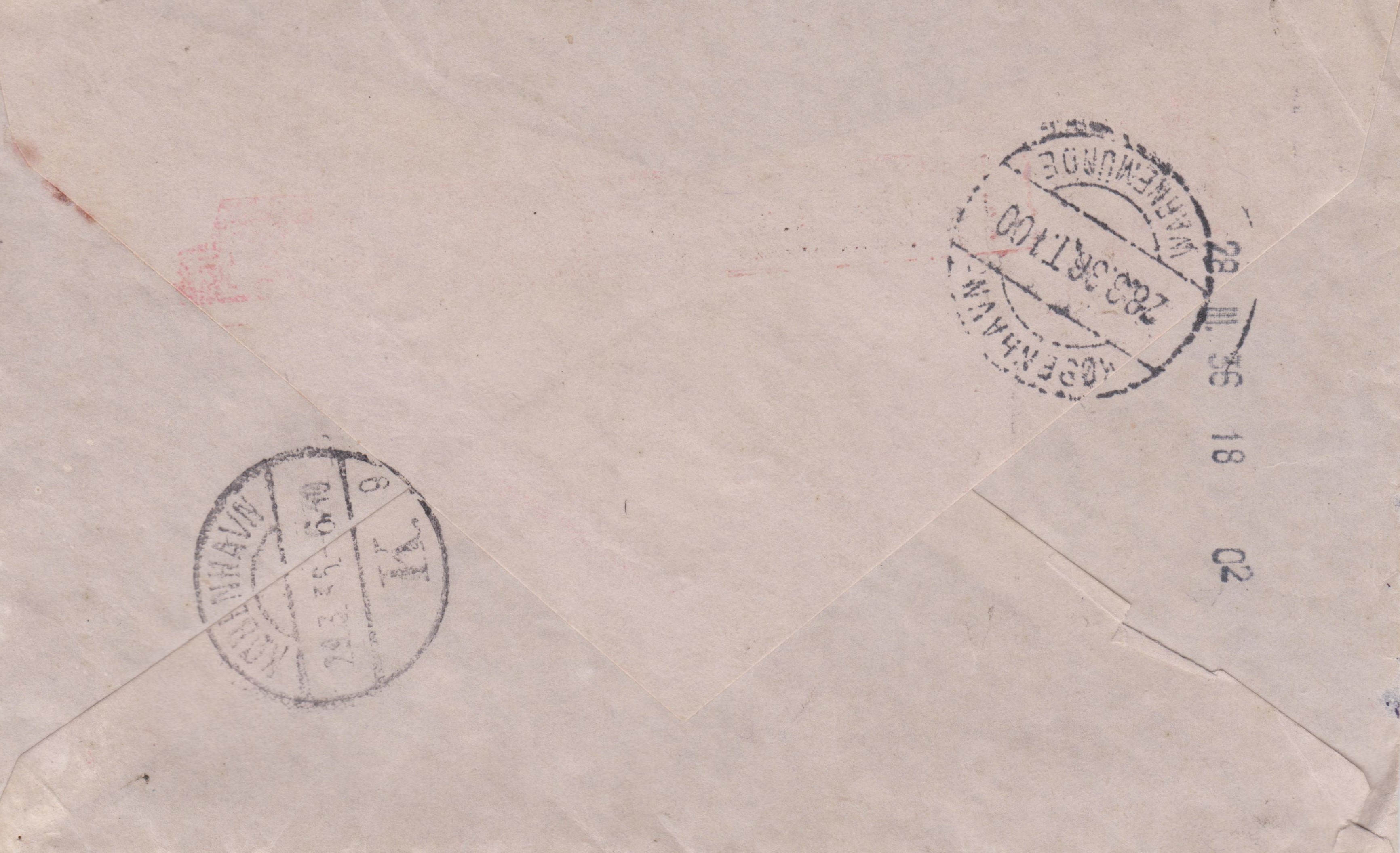Dann wurde dieser Brief per Schiff von WARNMÜNDE nach Kopenhagen befördert, was ein rückseitig abgeschlagener Tagesstempel dokumentiert!
