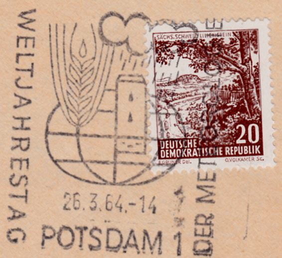 Sonderstempel vom 26.3.1964 aus Potsdam zum "Weltjahrestag der Mateorologie".